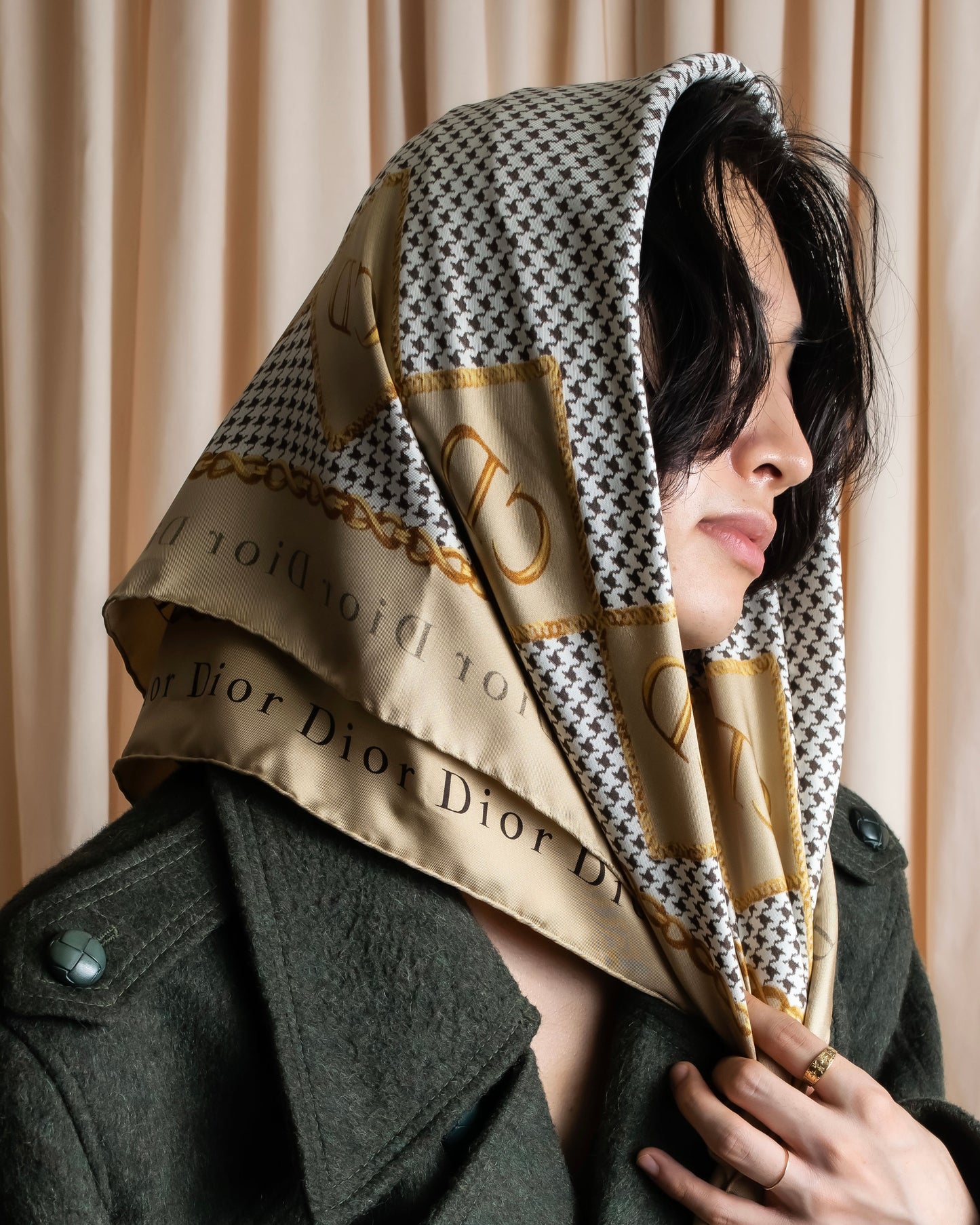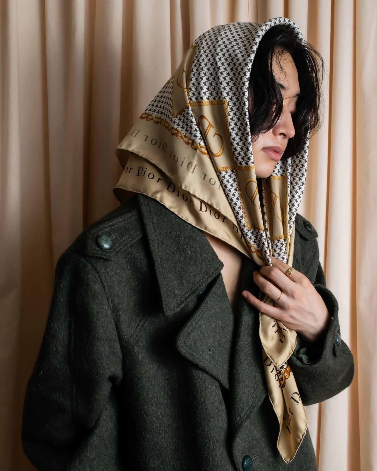 "Christian Dior" Houndstooth base logo and chain print large scarf