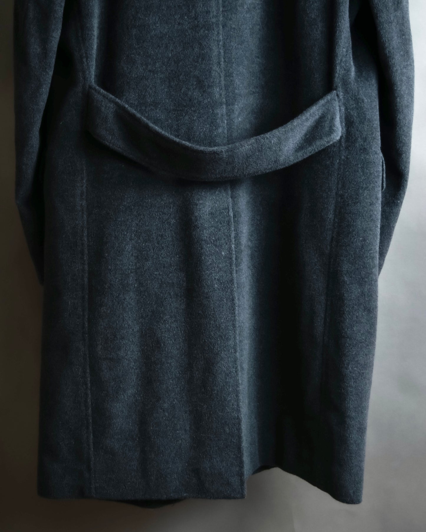 オーバーサイズな印象を与えやすい、肩幅から裾にかけて綺麗な落ち感を演出したボックスシルエットを持つシングルコートとなっておりおります。