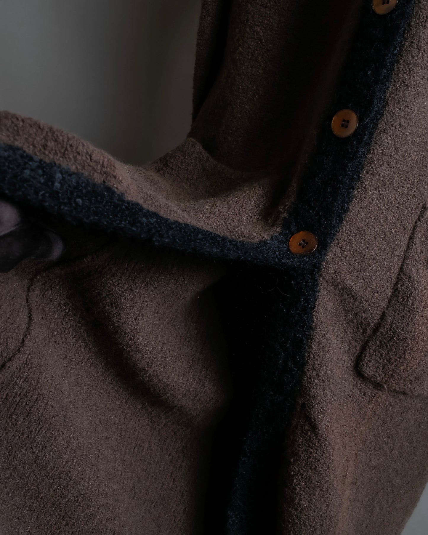 "Composition by KENZO" Fuzzy material cleric design knit coat