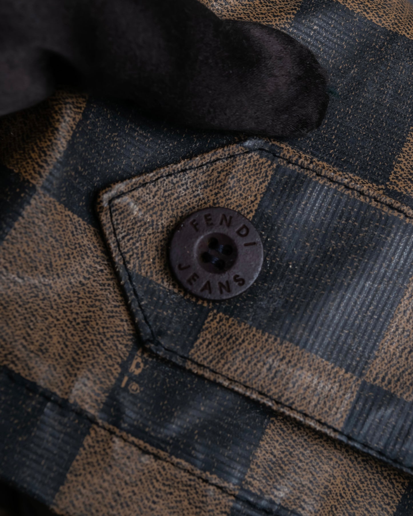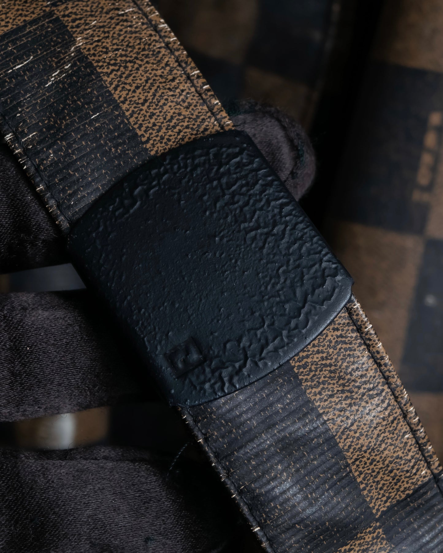 フェンディを代表するペカン柄を格子チェックにリアレンジした唯一無二の柄使いを全体に施しており、ブラックとゴールドのラグジュアリーな配色も相まって、アイコニックな風合いを演出しております。