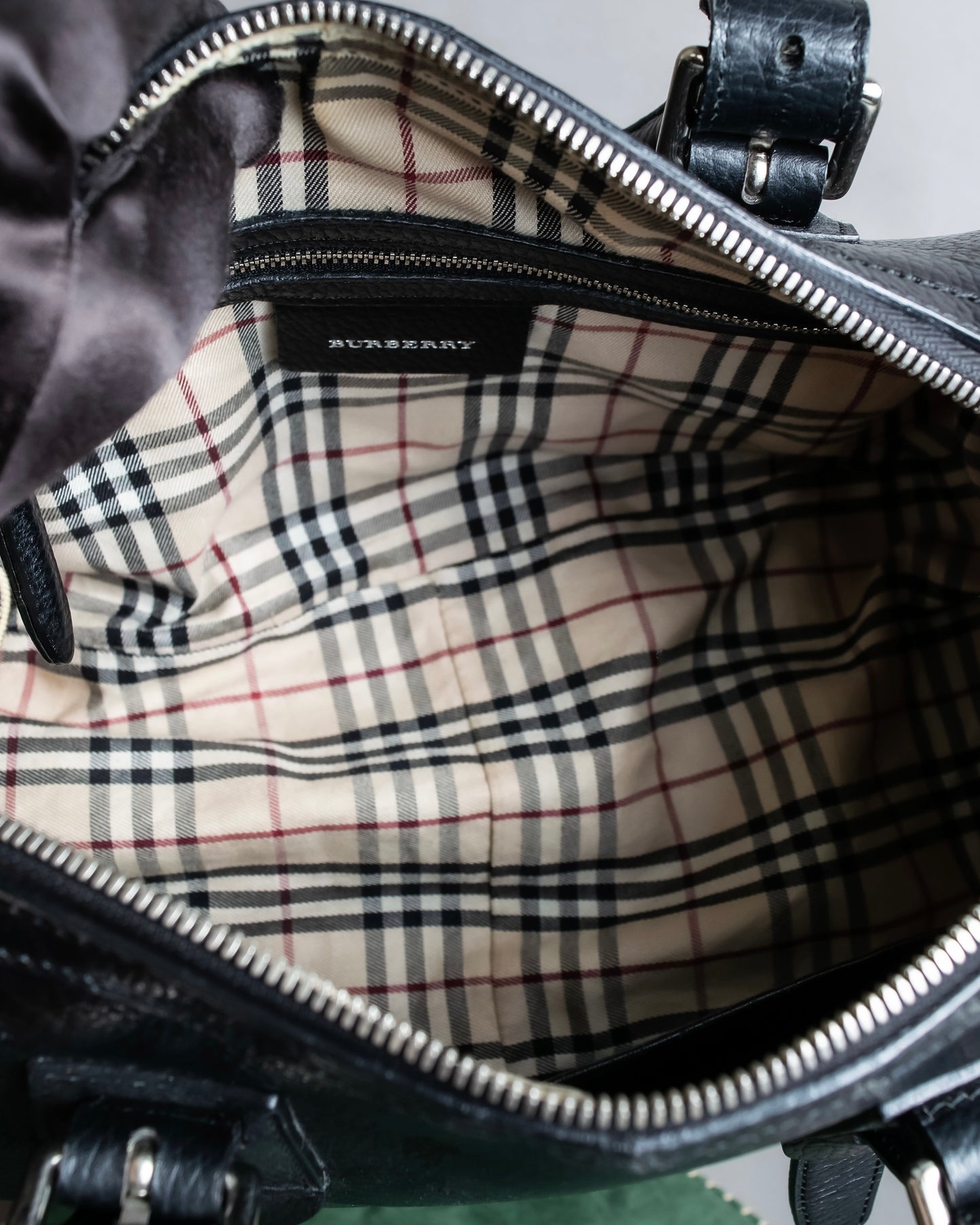 内部はシンプルながら実用的で、2つの張り付けポケットと1つのファスナーポケットが配置され、小物の整理に便利で、BURBERRYを象徴するノバチェック柄が内装に施されている為、外見のシンプルさとの対比が生まれ、上品さと伝統を感じさせております。