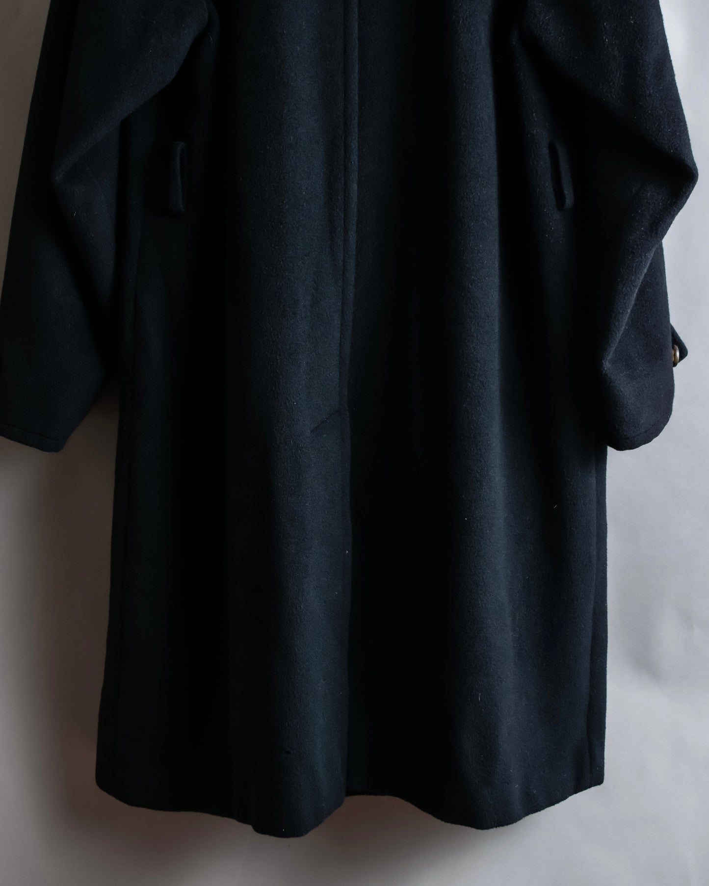 ウールのメルトン素材が使用されている為、重厚感のある直線的なシルエットを帯びつつ、高密度に織られた素材本来のしっかりとした厚みにより、防寒性にも優れ、真冬にも対応して頂ける逸品に仕上がっております。