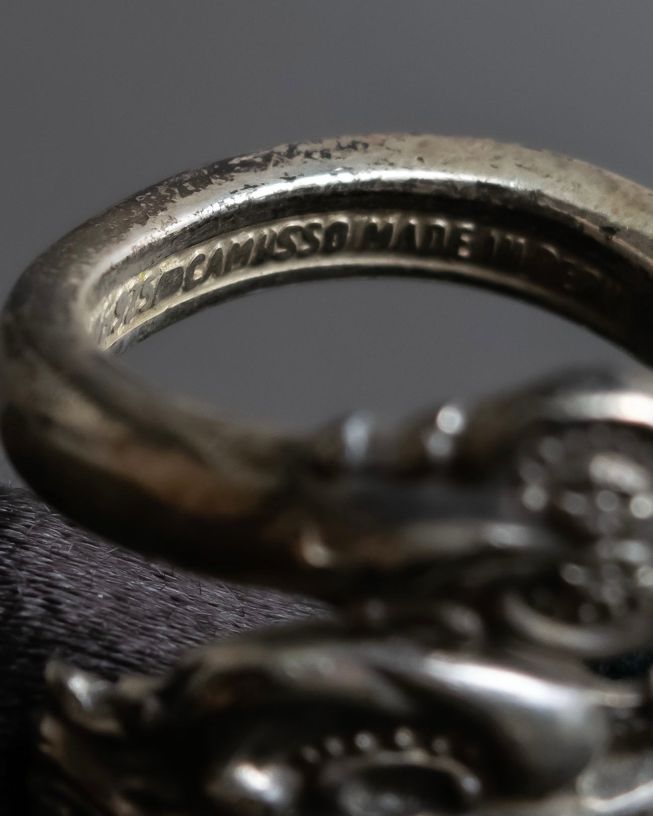 "Christian Dior" CD logo engraved diamond motif silver ring