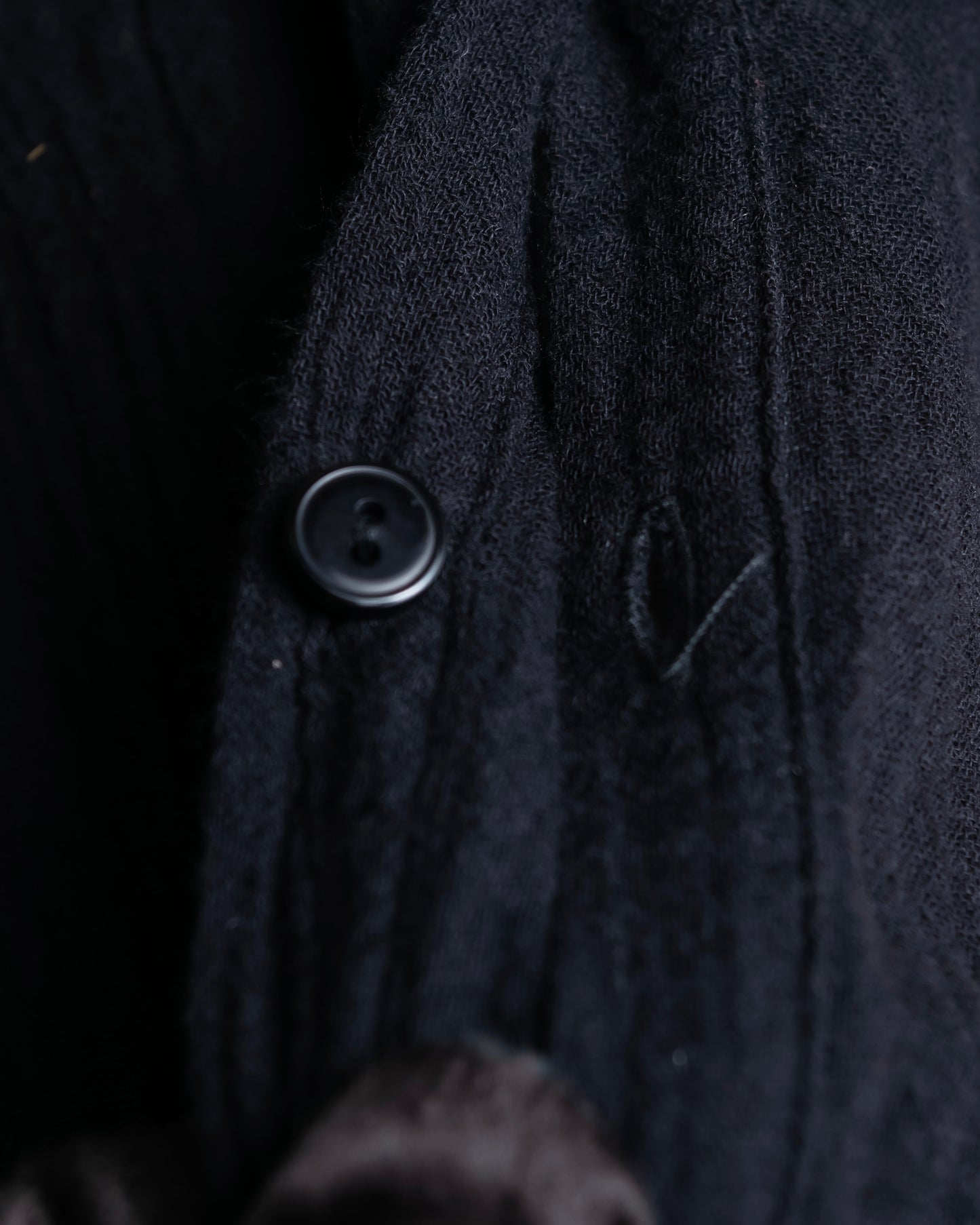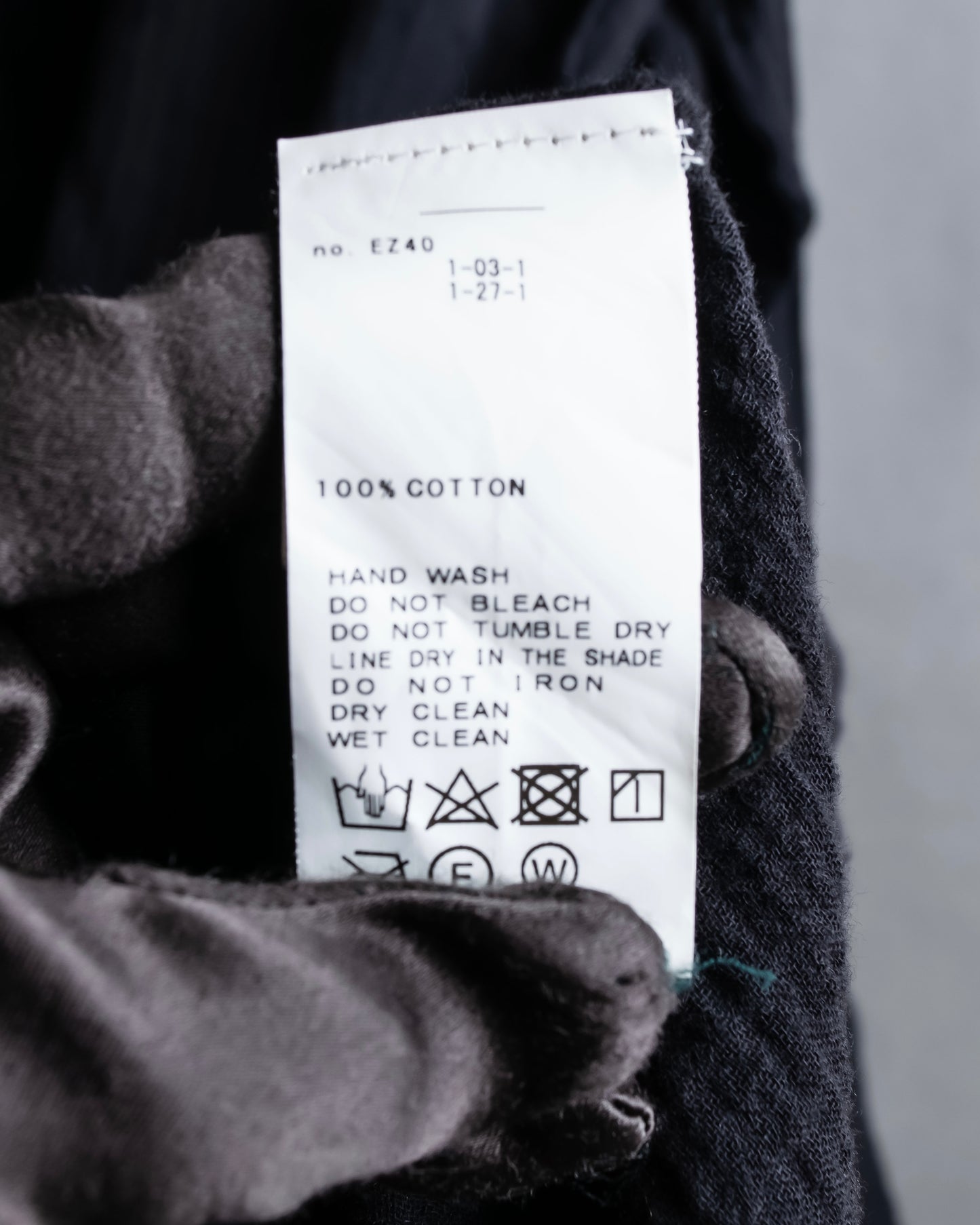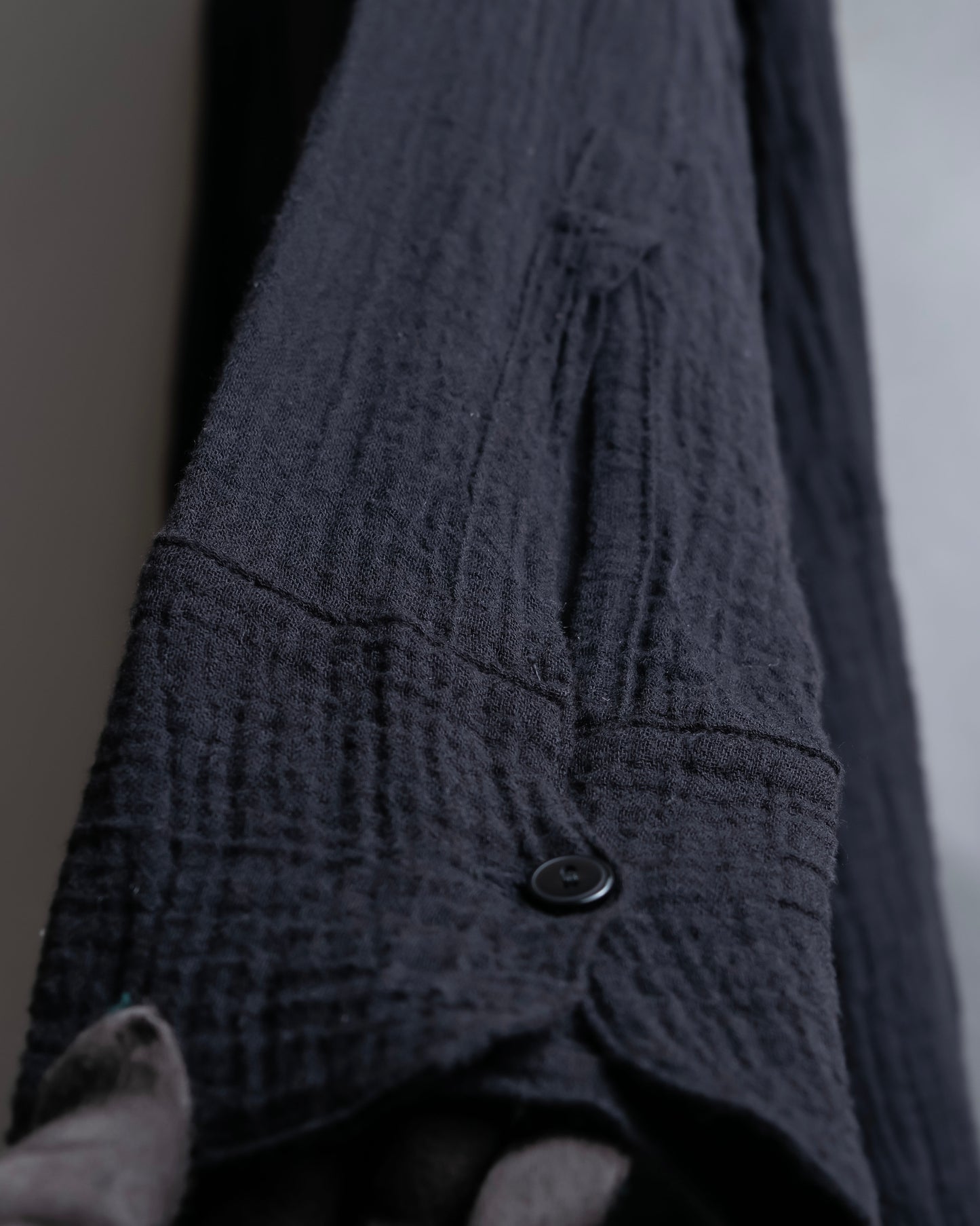コットン生地に施されたワッシャー加工は、表情豊かなシワ感が特徴で、この加工により、ナチュラルでリラックスした風合いが生まれ、デイリーユースにお使いになりやすい逸品に仕上がっております。