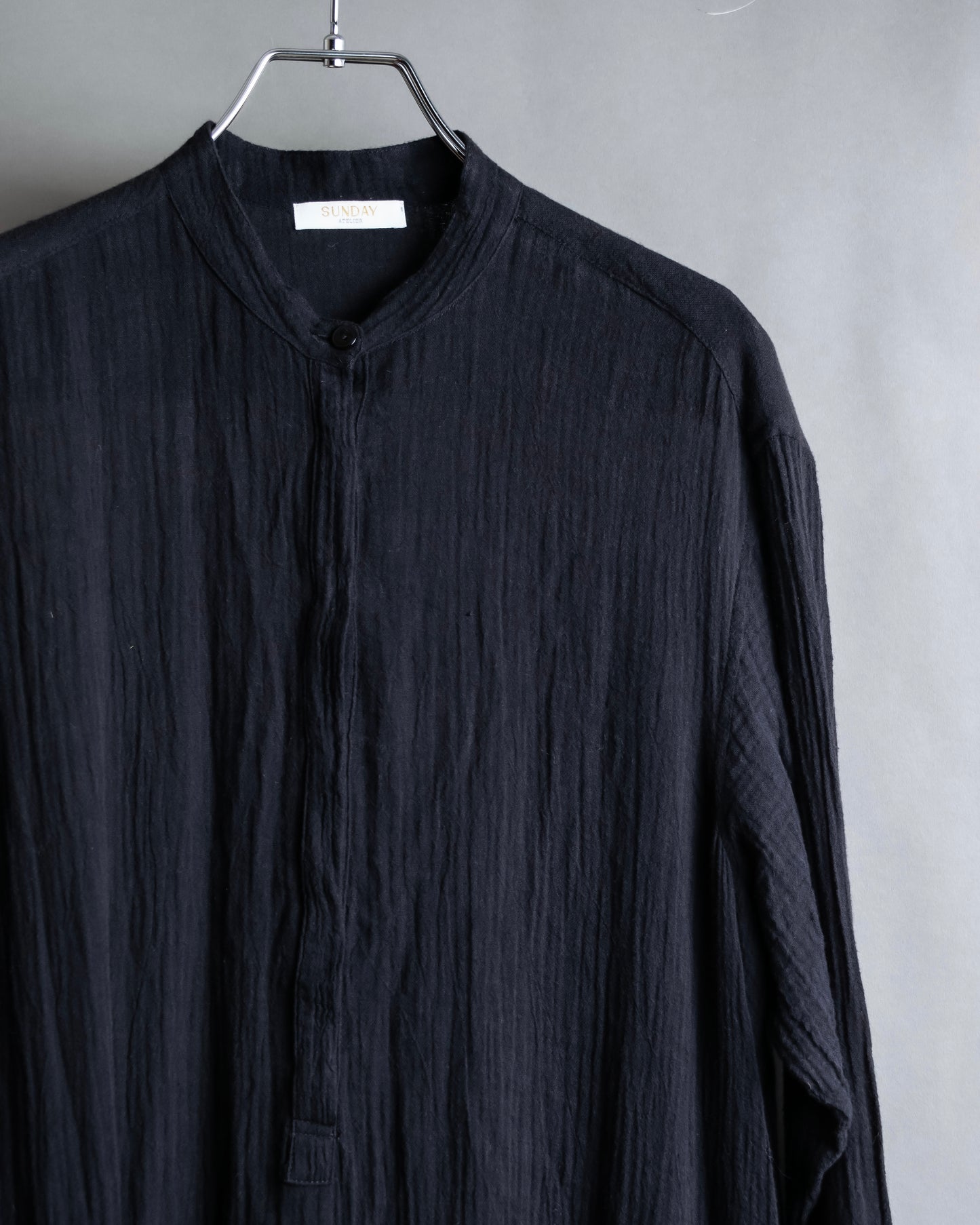 ミニマルなノーカラーに加え、途中までボタンのあるプルーオーバー仕様により洗練されたフロントデザインを演出しているこちらの逸品。