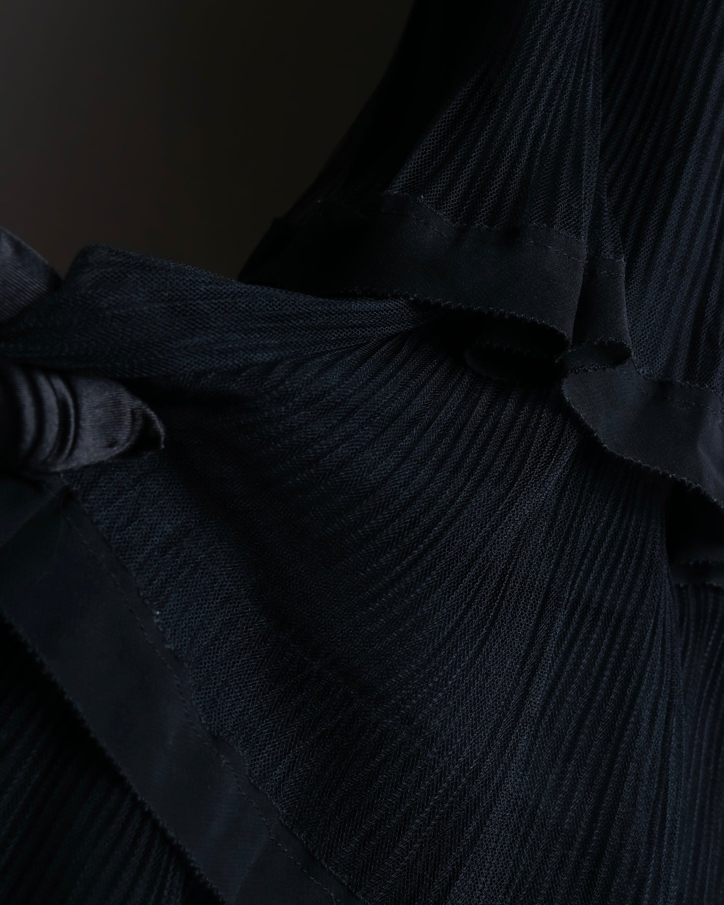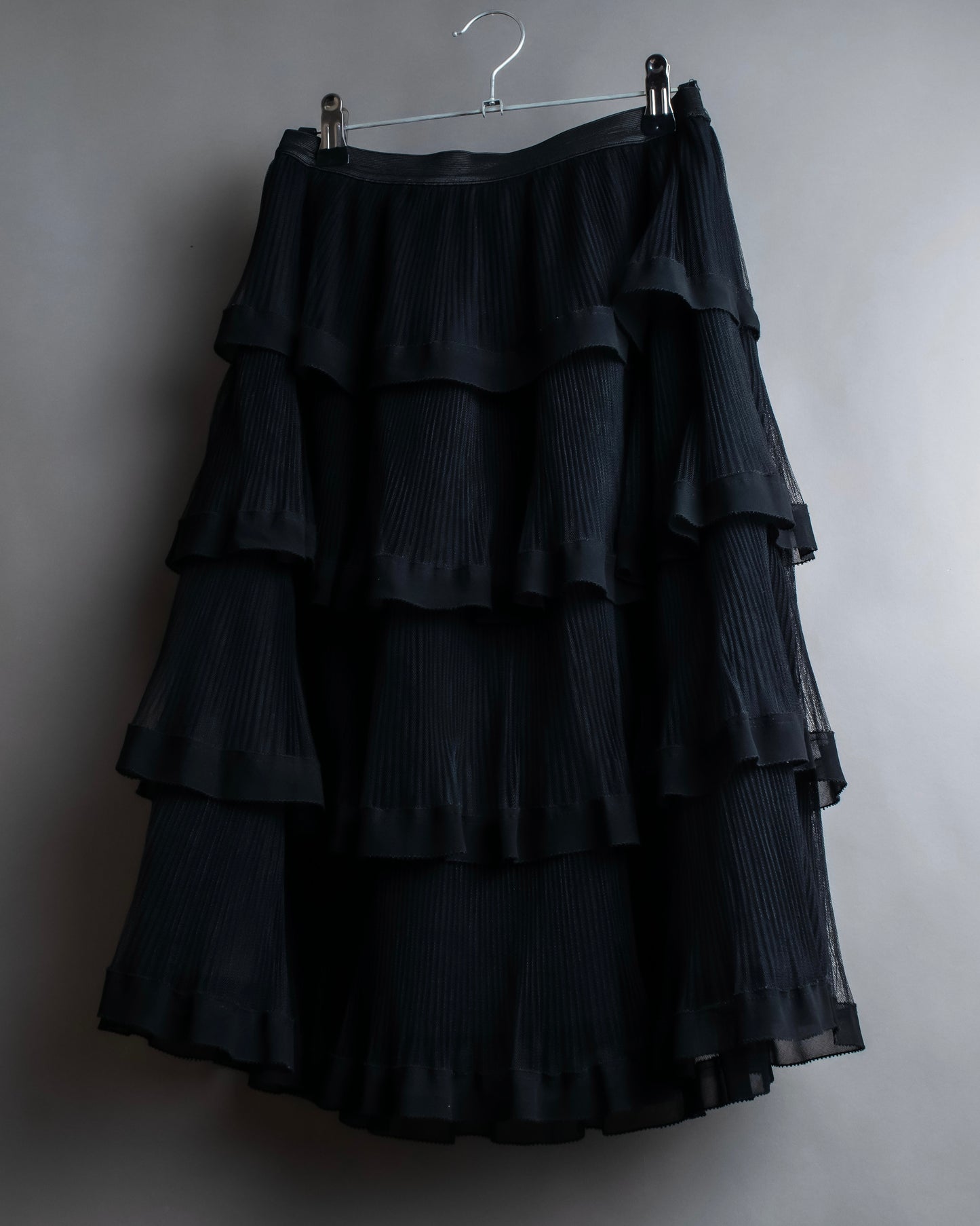 4層にわたってプリーツ加工された布が重なり、エレガントかつフェミニンな雰囲気を感じさせるデザイン性を持つこちらの逸品。