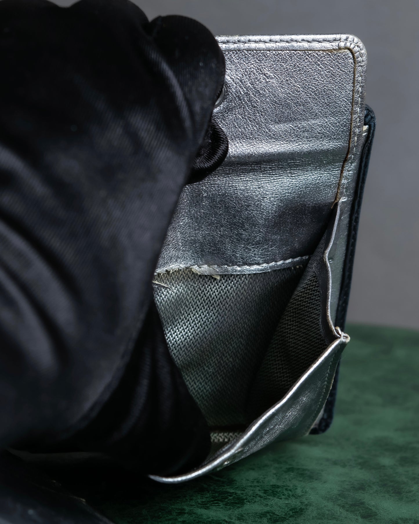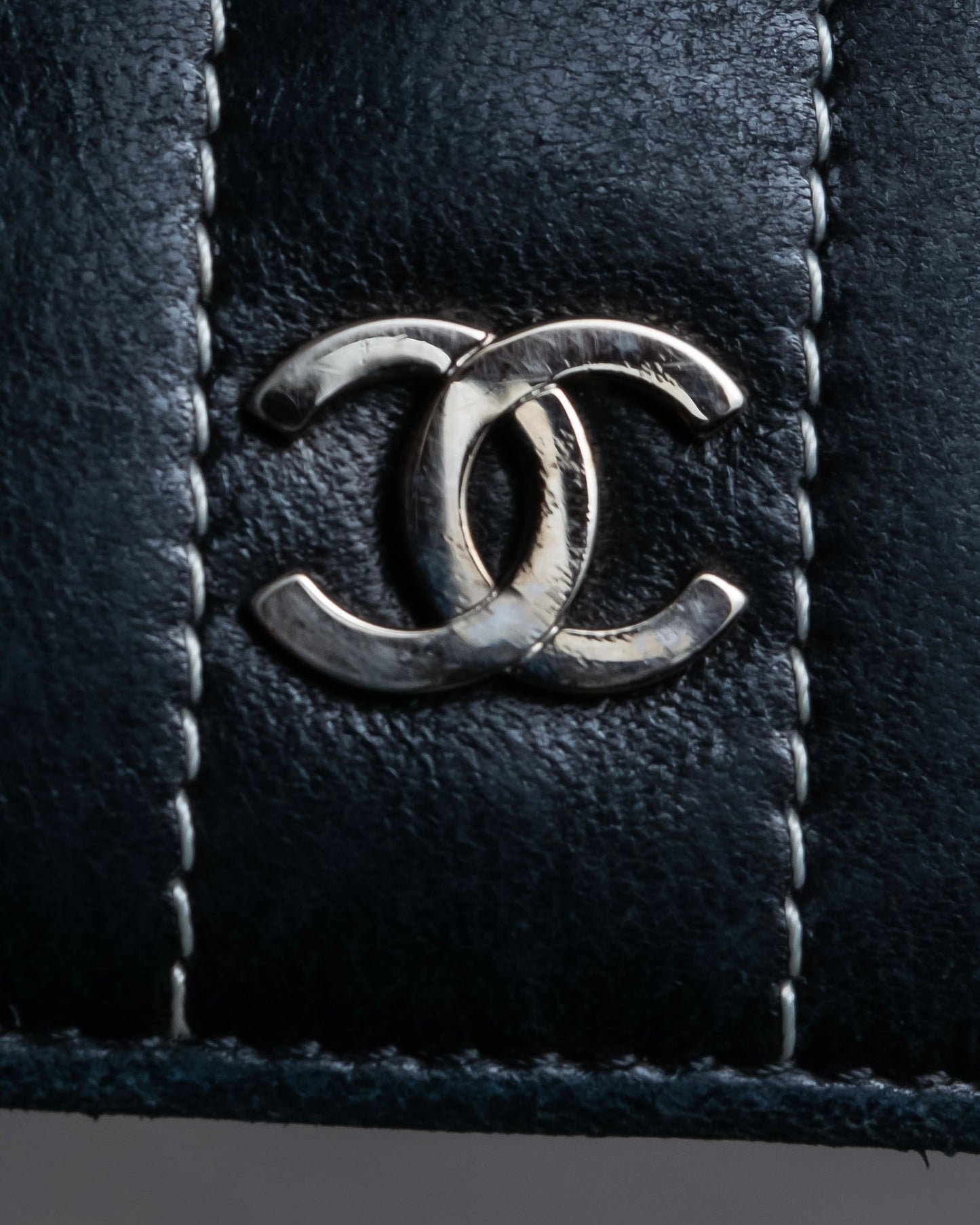 "CHANEL" Mademoiselle line design coco mark engraved bi fold wallet