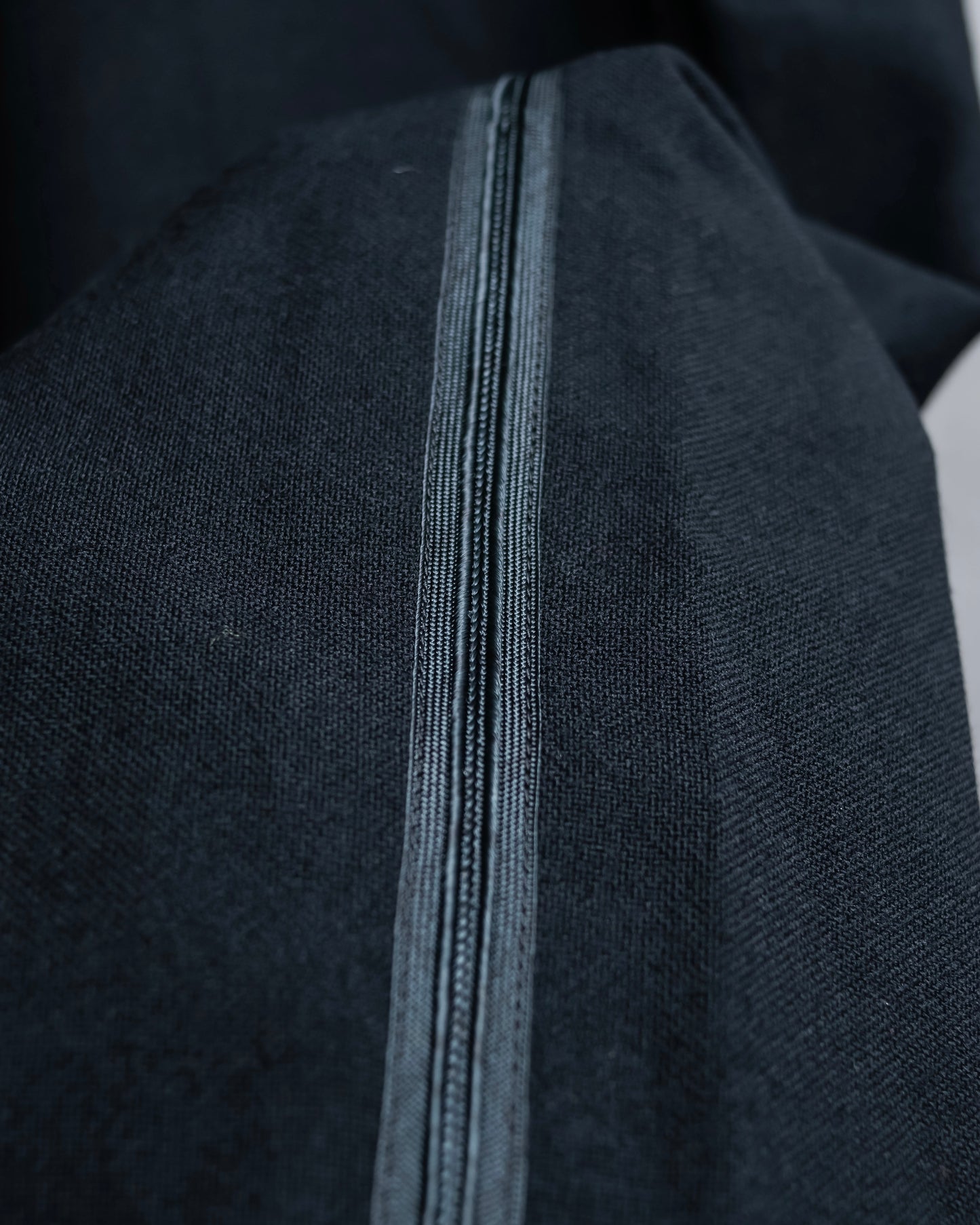 注目すべきは、サイドに施された別布での切り替えデザインで、さりげないアクセントを加えつつ、センタープリーツと相まって縦のラインを強調する為、より体型を綺麗に見せることの出来る魅力に富んだデザインとなっております。