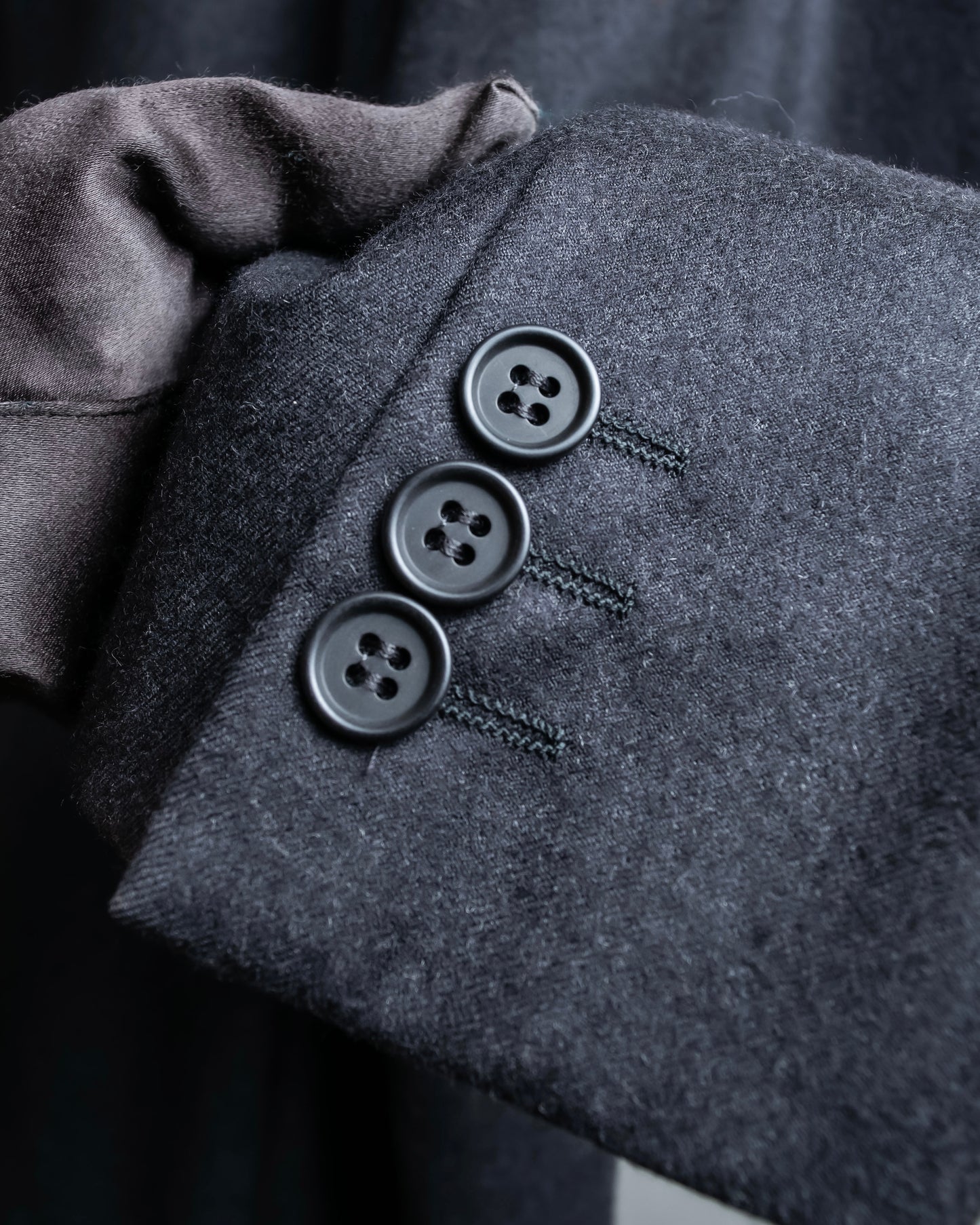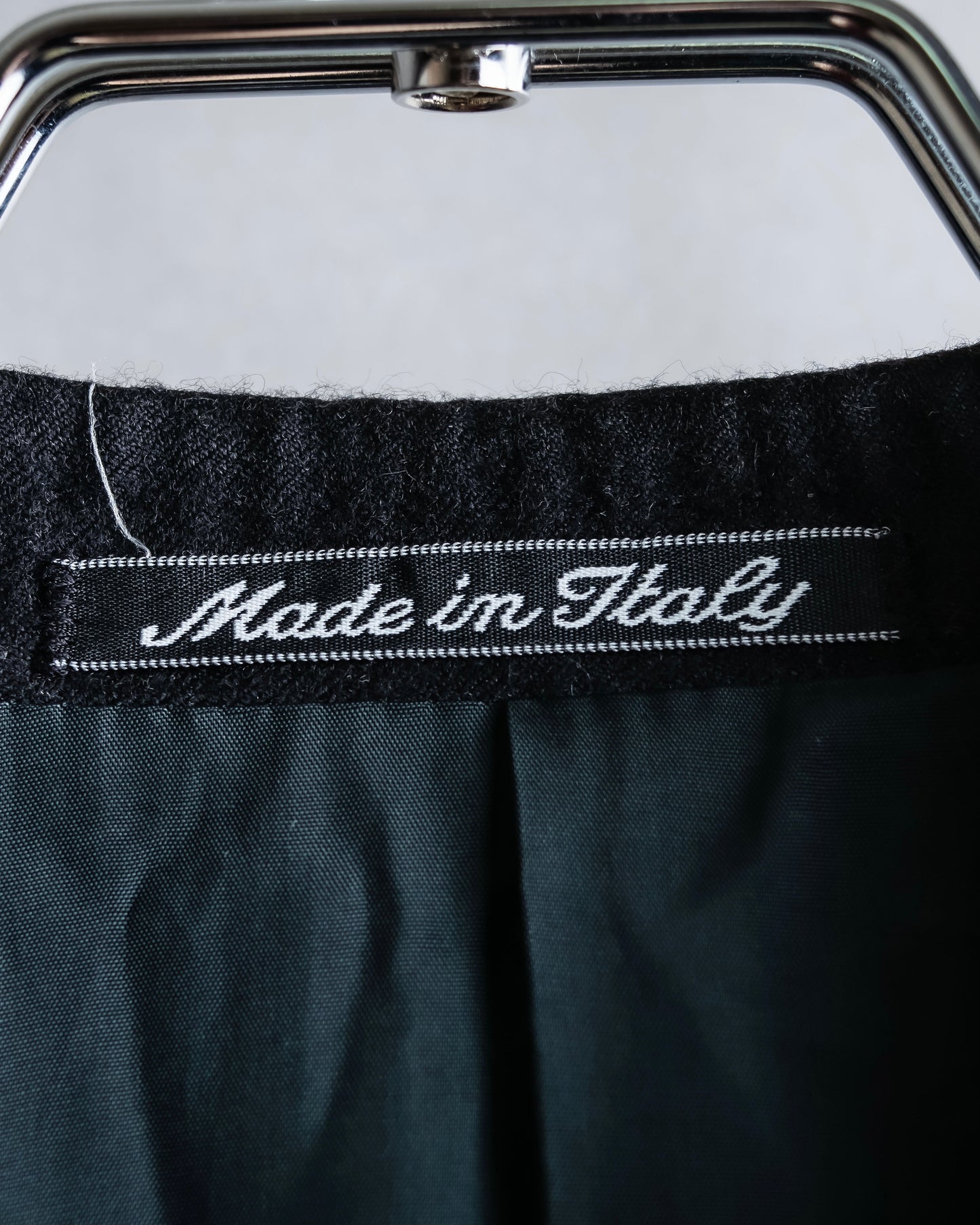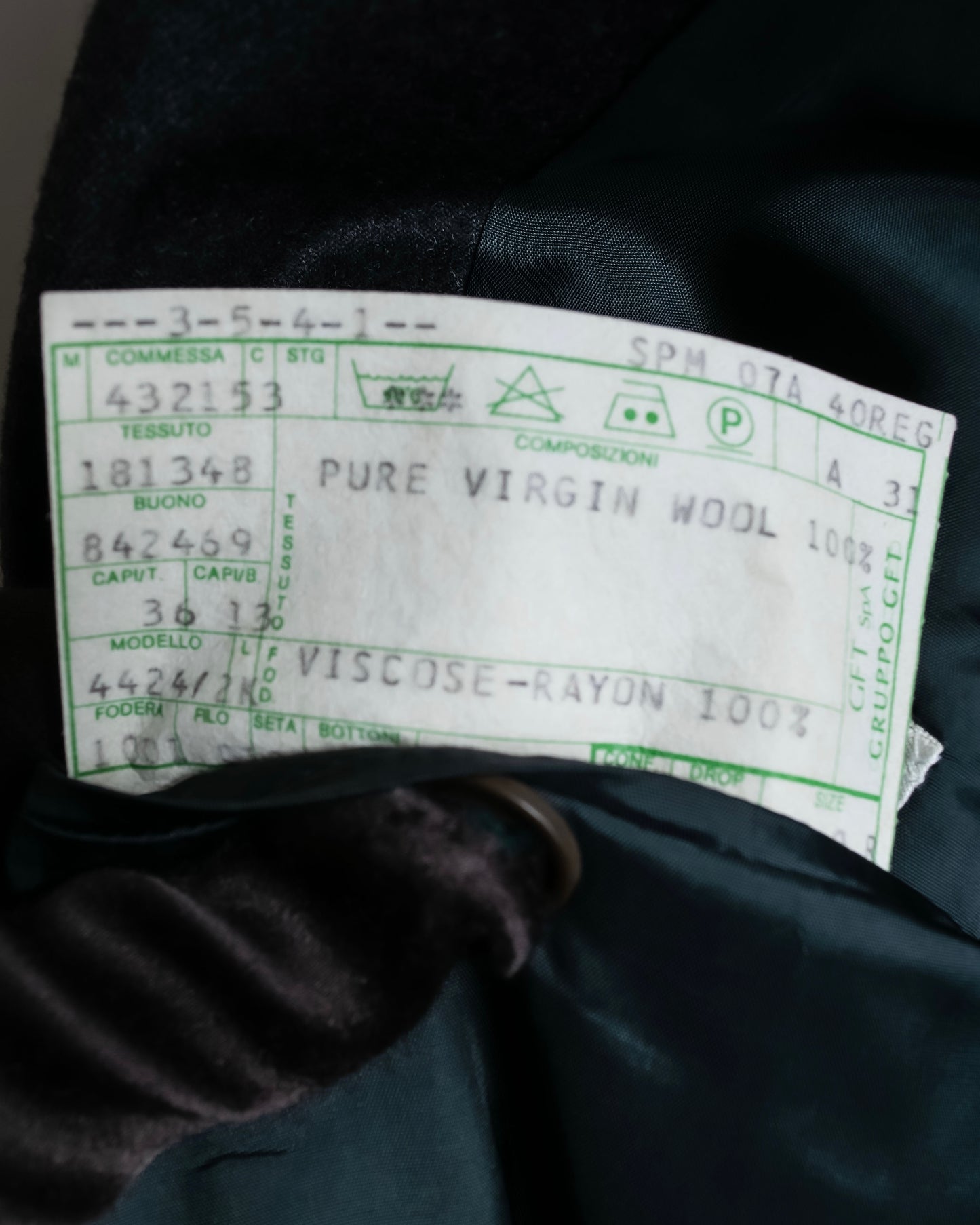 エレガントさ感じさせる大きめに設定されたピークドラペルに加え、クラシカルな印象のダブルブレストによる伝統的なテーラリング性が大変美しいこちらの逸品。