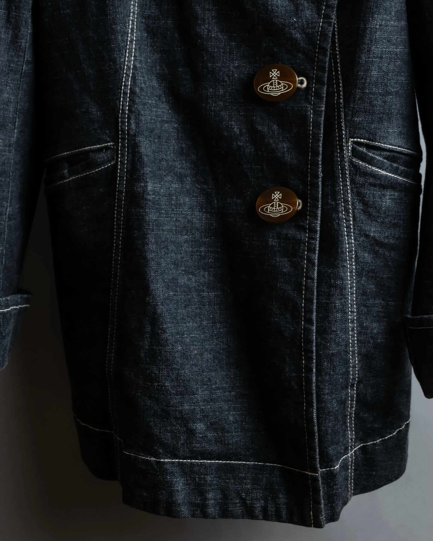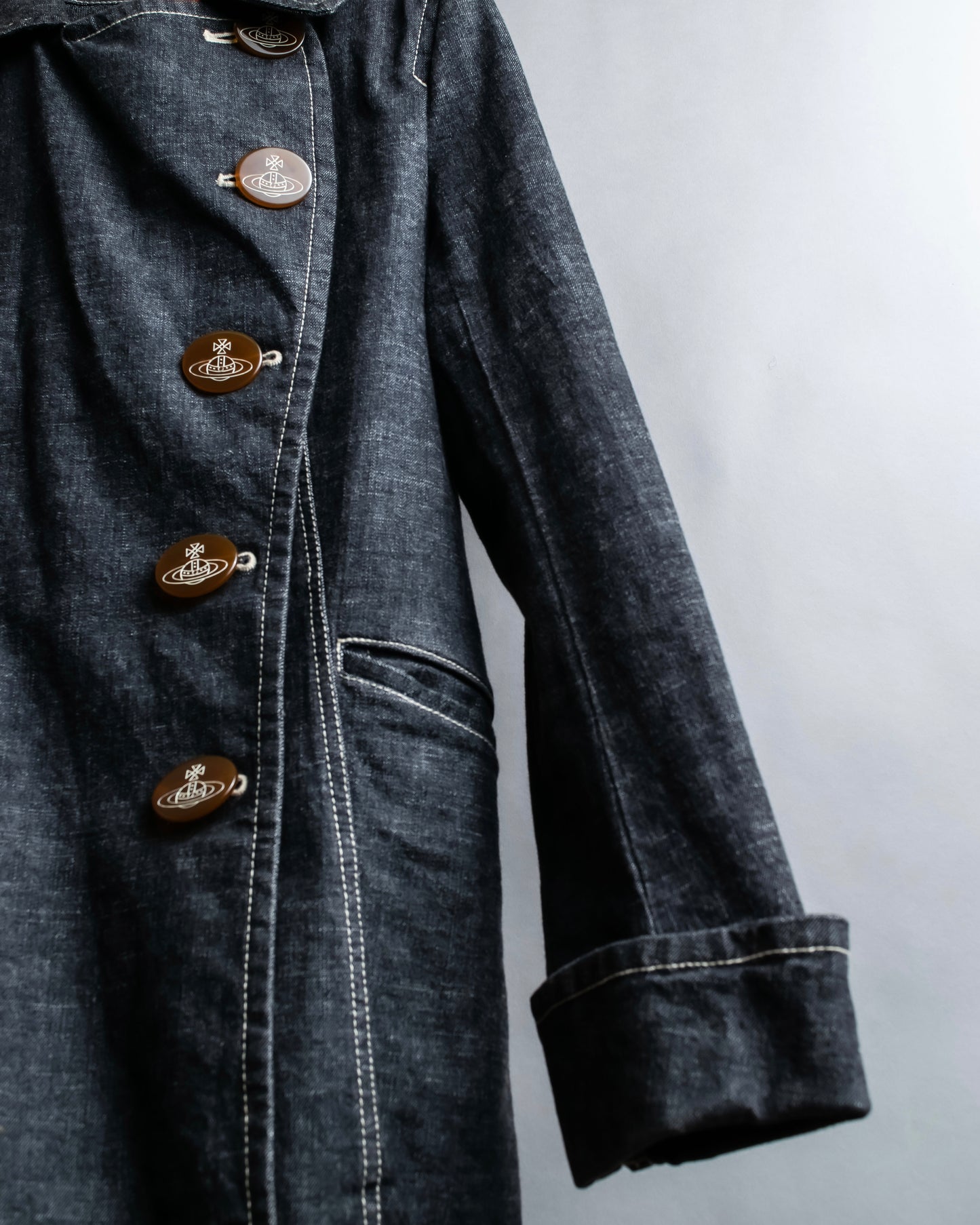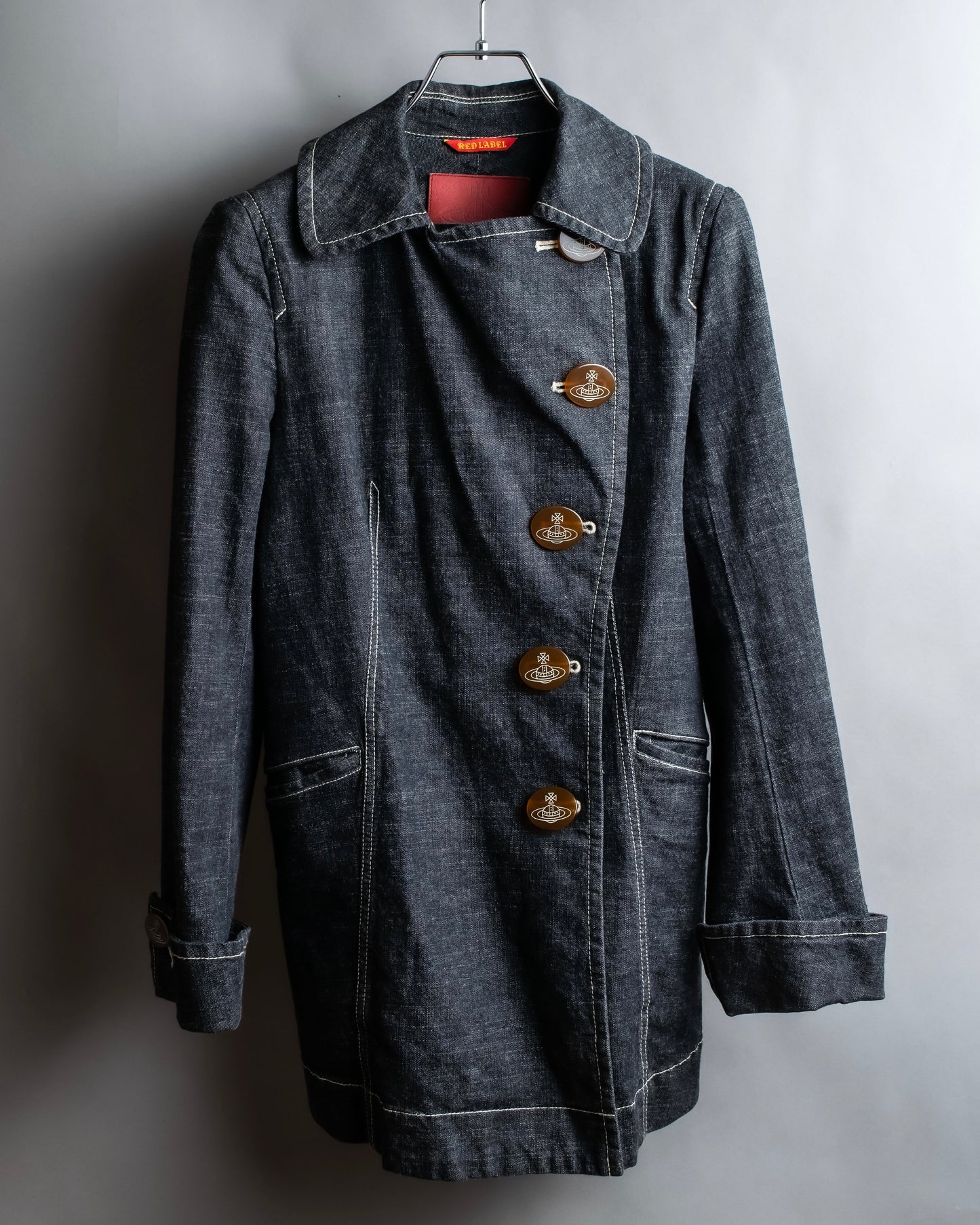"Vivienne Westwood RED LABEL" Asymmetrical button design mid length denim coat