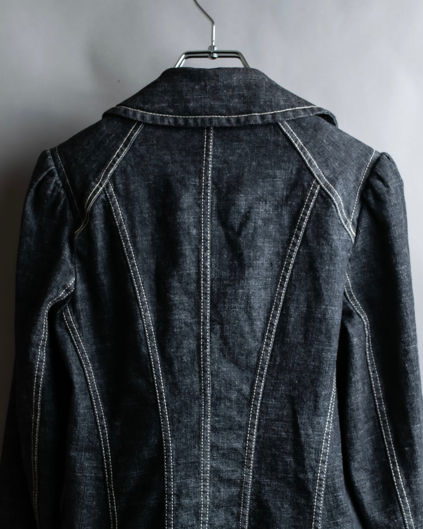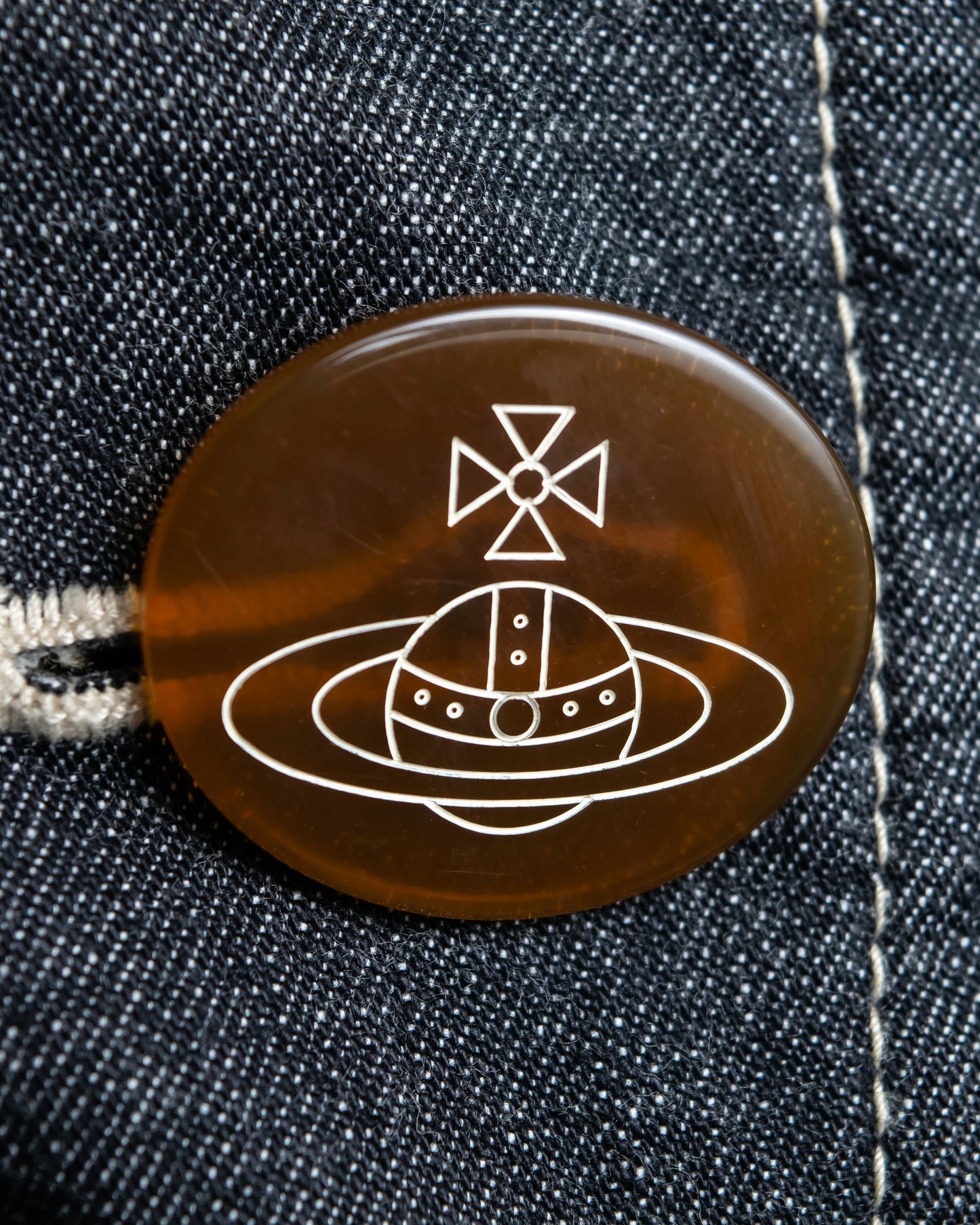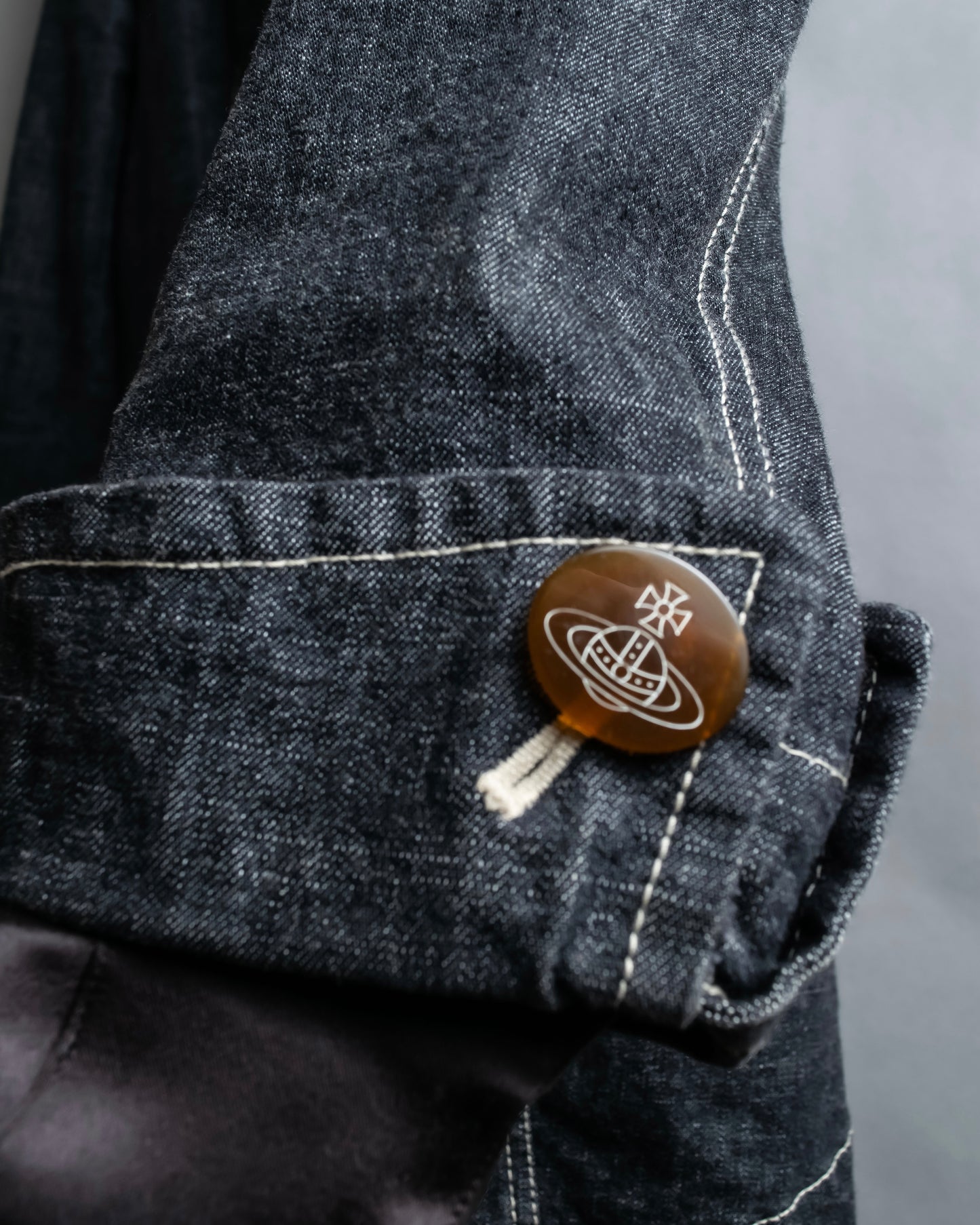 "Vivienne Westwood RED LABEL" Asymmetrical button design mid length denim coat