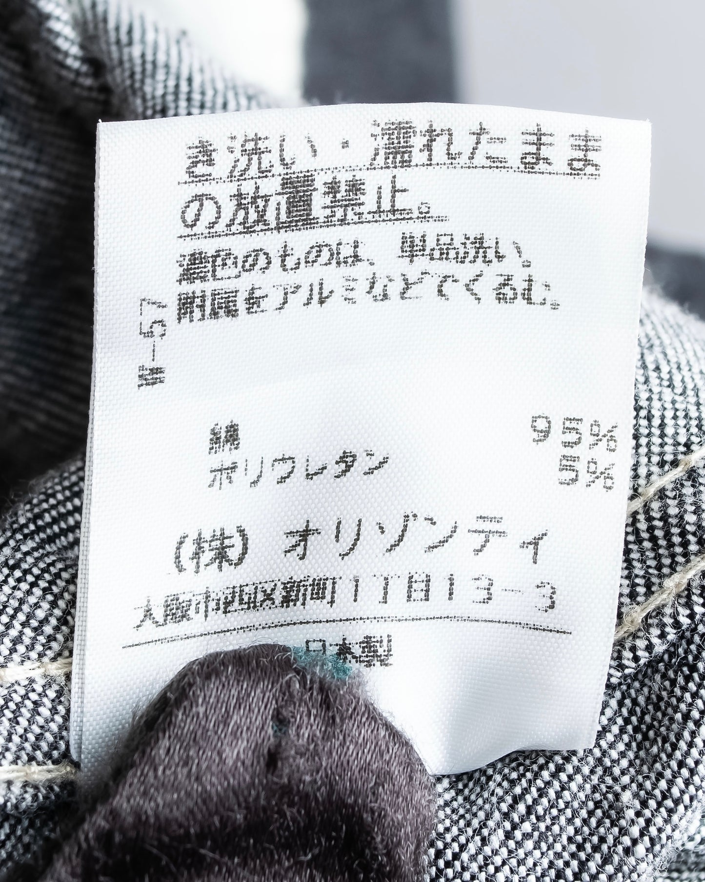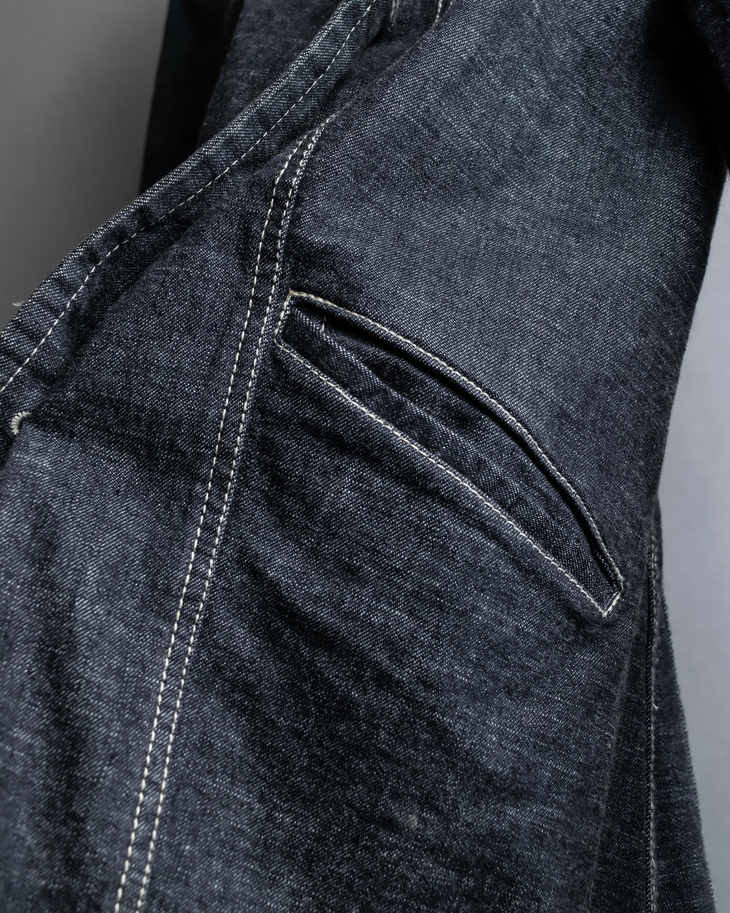 全体に施された白のステッチがアクセントとして落とし込まれており、デニム素材の美しい風合いを引き立てつつ、手の込んだ技巧をお楽しみ頂けるディテールとなっております。