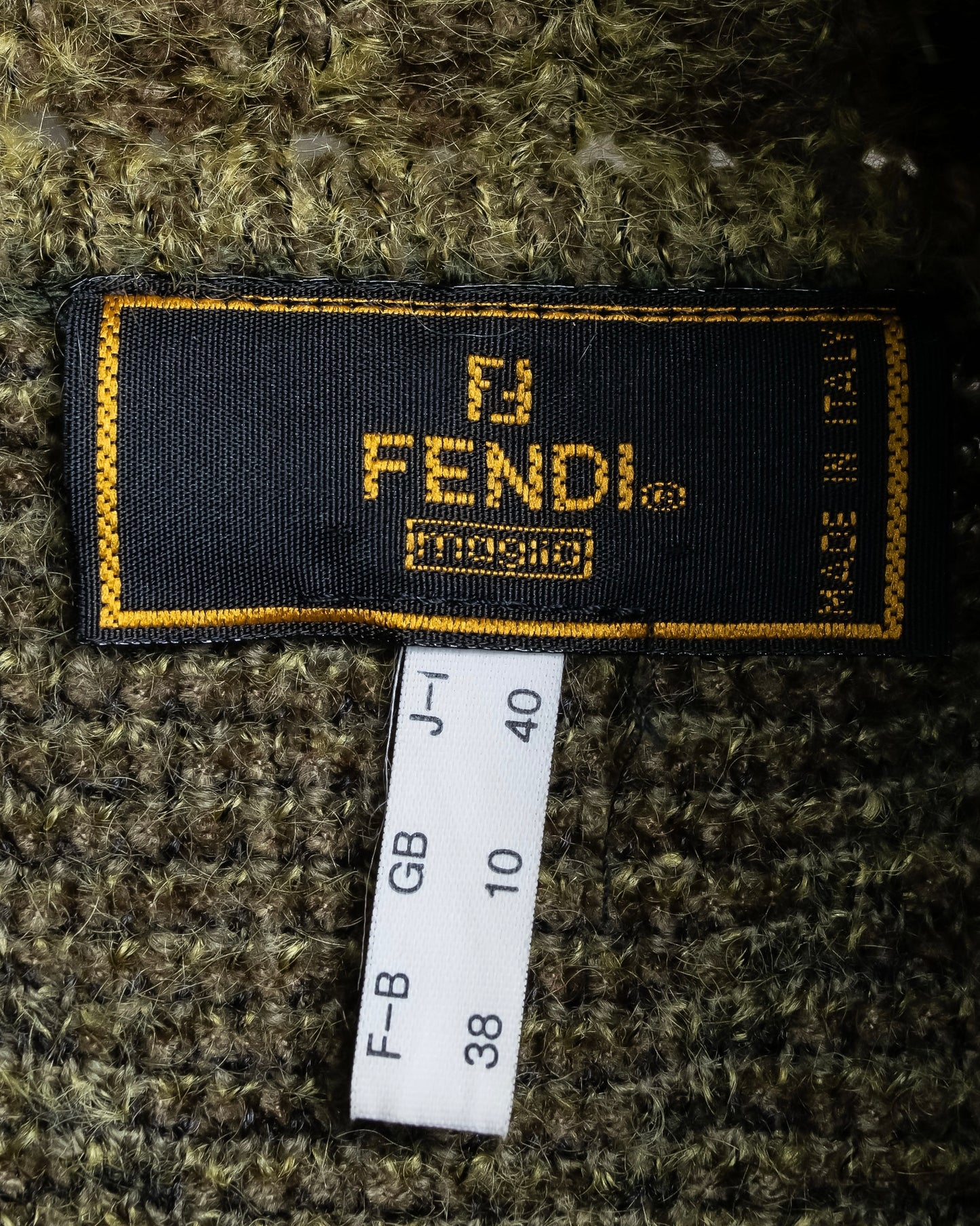 "FENDI" Houndstooth & zigzag pattern turtleneck tunic pullover