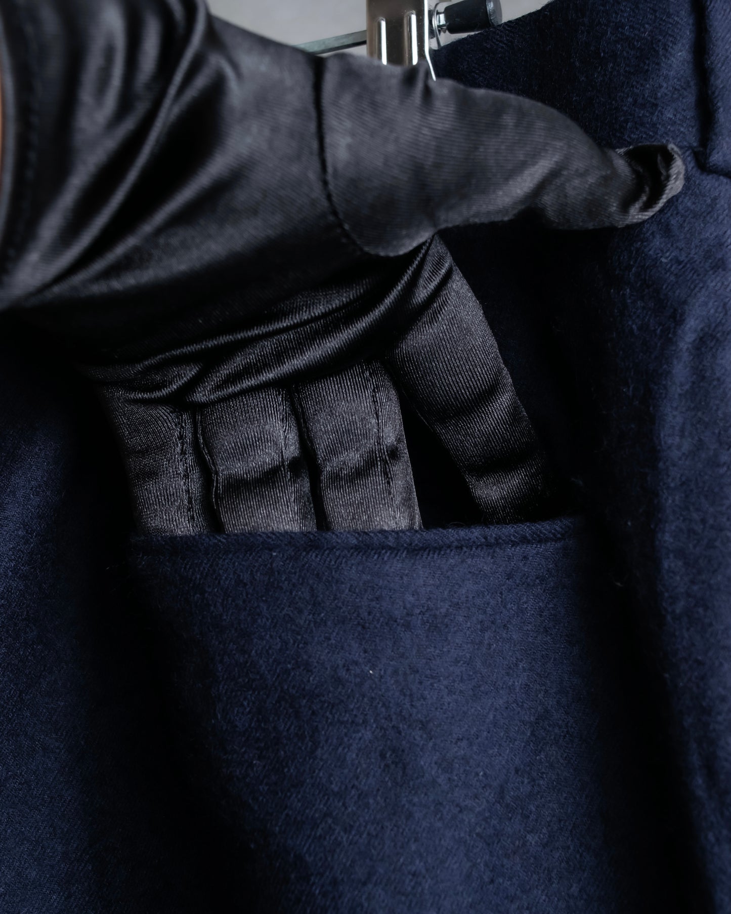 深みのあるネイビーの色味は、落ち着きと上品さを兼ね備えている為、施されたディテールやシルエットが際立ち、より一層の洗練された印象を与えると同時に、どのようなシーンでも高級感を演出して頂ける美しいお色味に仕上がっております。