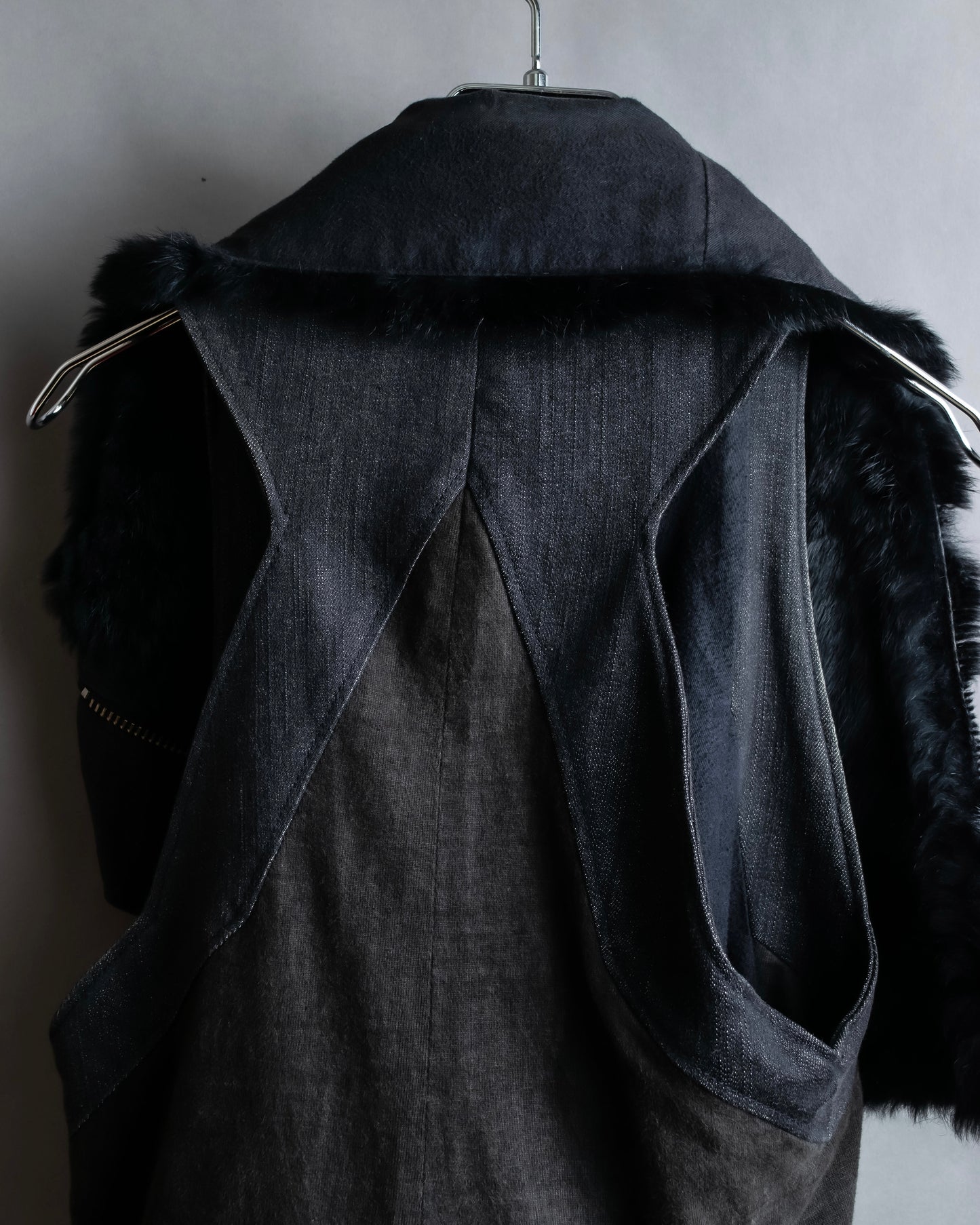 "HELMUT LANG" Fur docking denim switching design zipper best