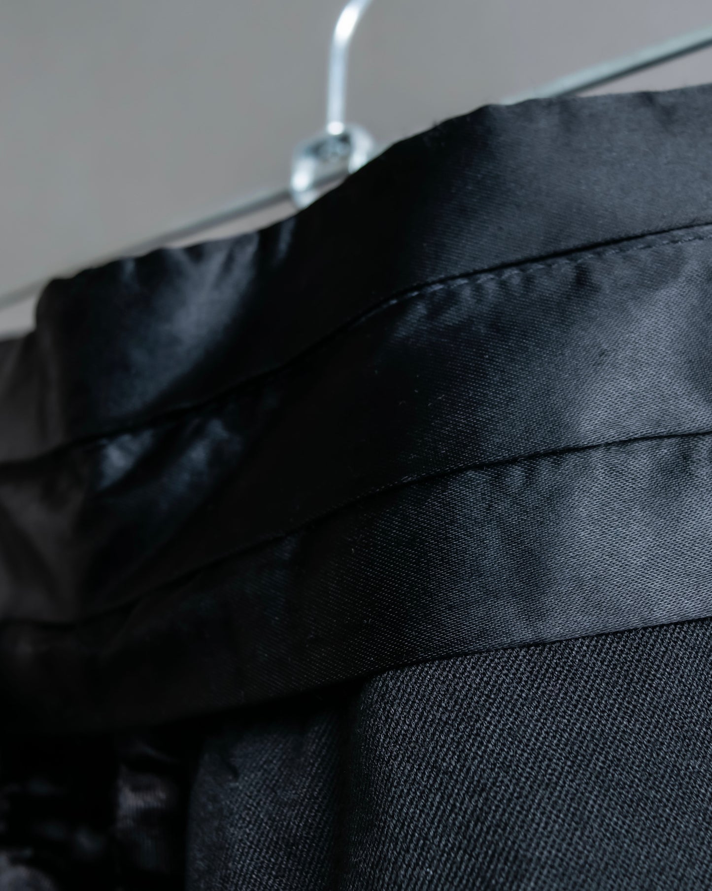 ウエスト周りには光沢感のある生地に切り替えられているデザインが施されており、さりげないアクセントとして普段のスタイリングにすんなり落とし込んで頂ける洗練された印象を感じさせます。