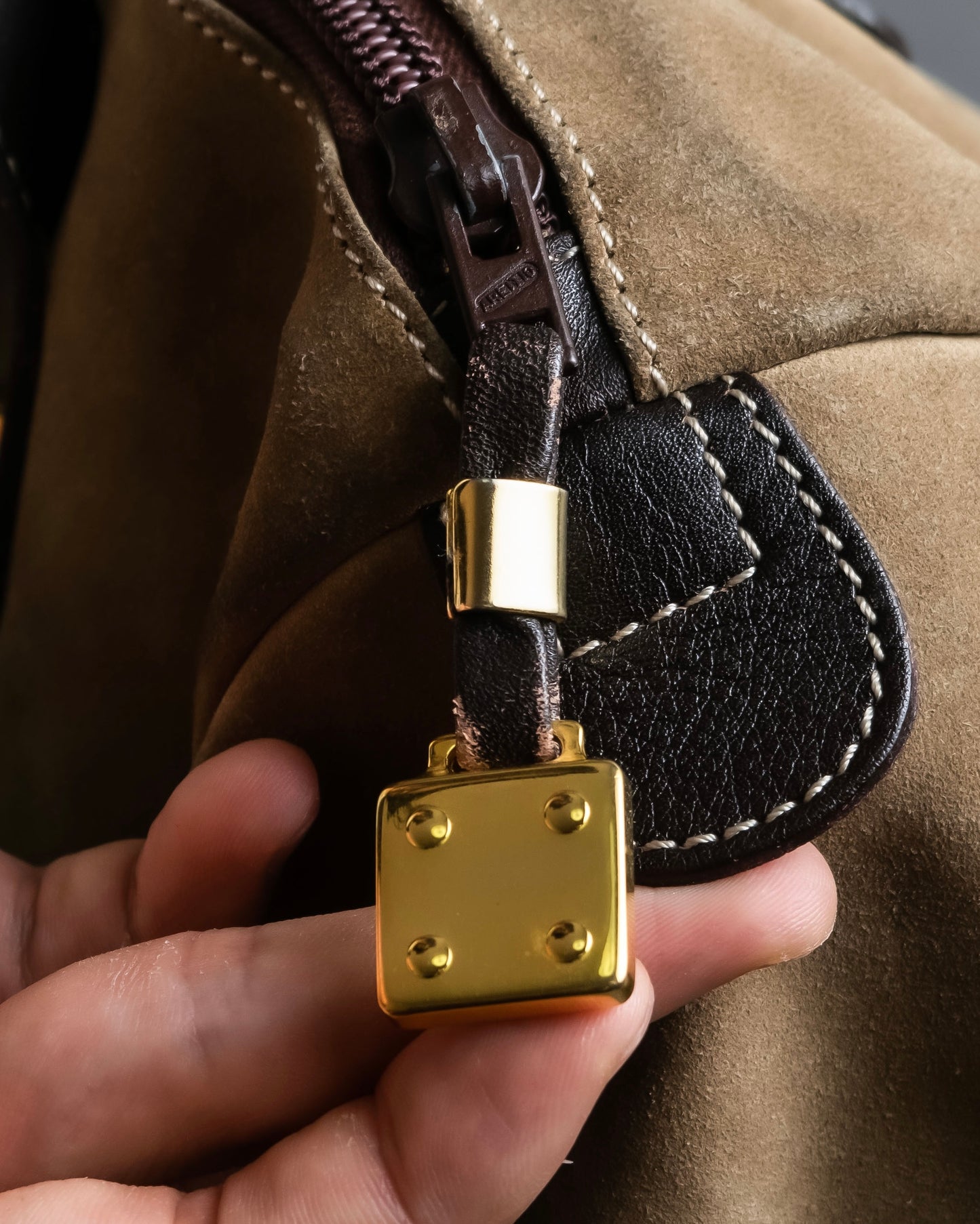 本体部分のスウェードと、ワンハンドルパーツのレザーとの対比が美しく、皮革工房として誕生した背景を持つロエベならではの、こだわりが感じられる素材のコントラストをお楽しみ頂けます。
