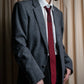 深いボルドーカラーに、光沢のあるサテンのドットが一面に散りばめられたこちらのナロータイは、Diorらしい艶やかさと品格が共存する一本です。ドットは決して幼くならず、むしろ織りの立体感によって光を柔らかく反射し、ヴィンテージらしい優雅な佇まいを感じさせます。地の織り目には繊細な斜めの畝が浮かび、素材の奥行きを引き立てています。