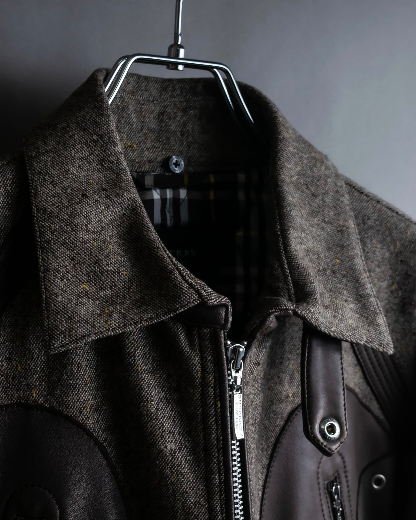 "BURBERRY Black Label" Leather combination design zip-up blouson