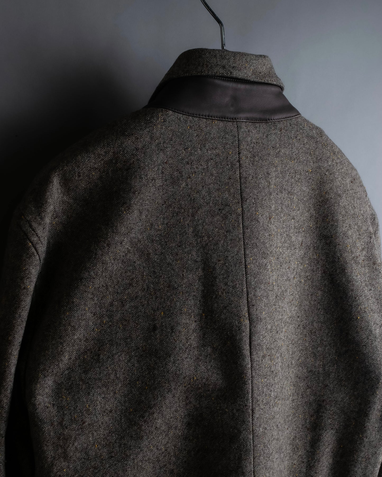 襟元も同様にレザーで縁取られており、全体的な統一感を持たせるとともに、洗練された顔まわりを演出して頂けます。