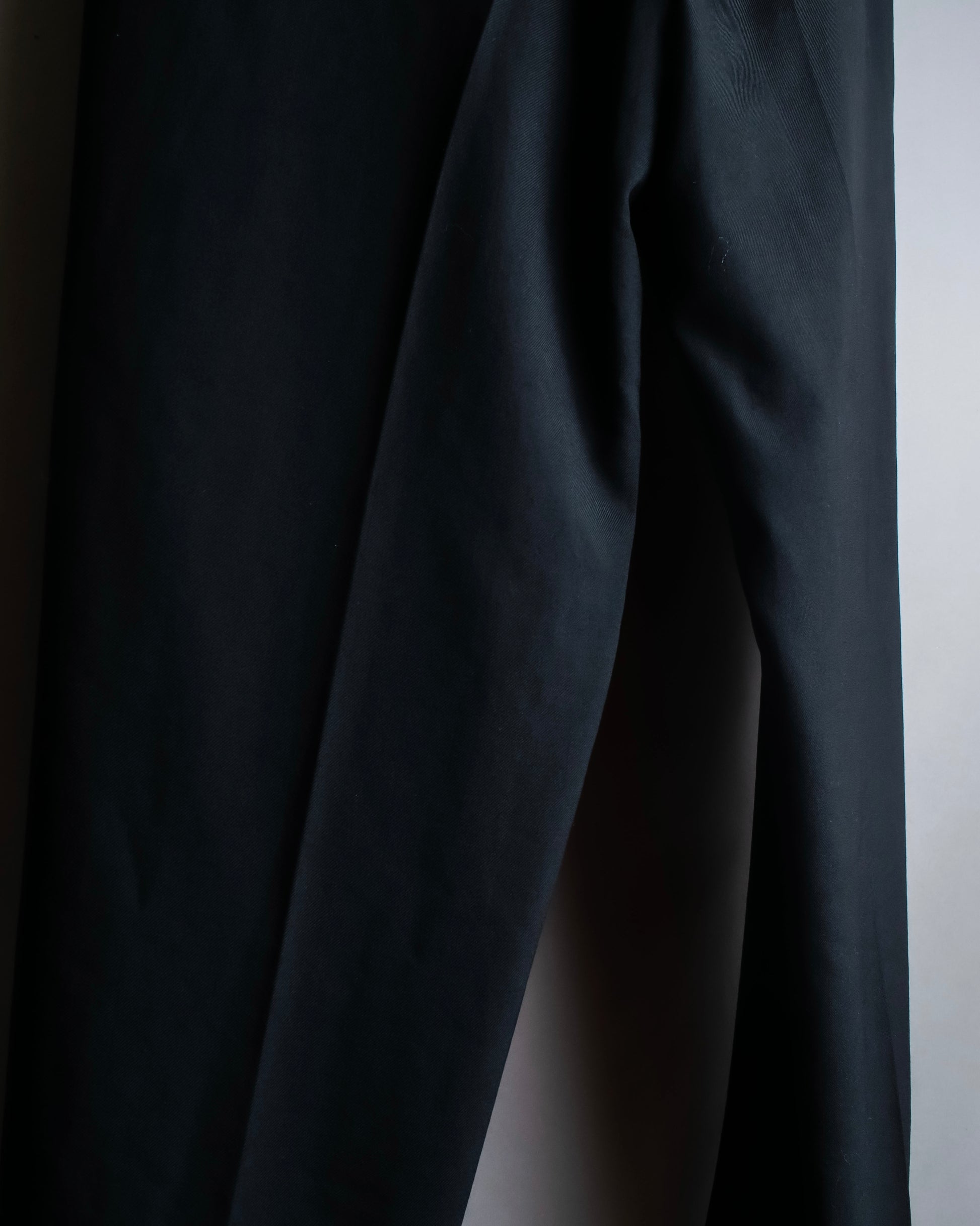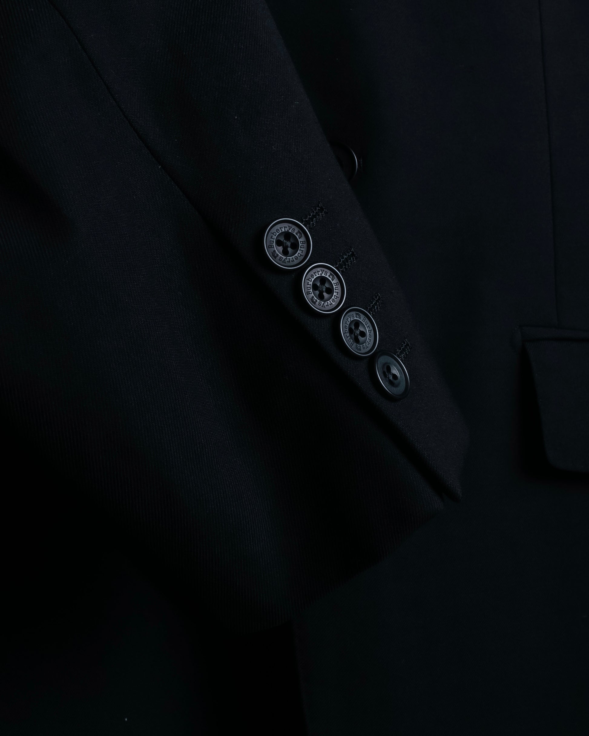シルエットは比較的タイト目な作りになっており、細身ながらしっかりと着丈のあるパンツと合わせた時に生まれる美しいIラインのシルエットは、モードで洗練された印象を演出してくれます。カラーリングもブラックですので、シーンを選ばずにご着用可能です。
