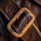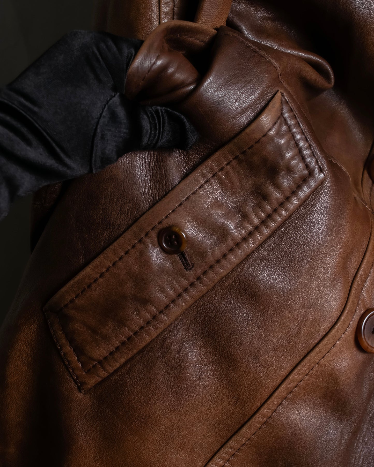美しいキャメルブラウンのレザーが特徴で、柔らかな質感と光沢を持ちながらも、耐久性に優れており、長年にわたって使用することでさらに風合いが増す特性を備えています。