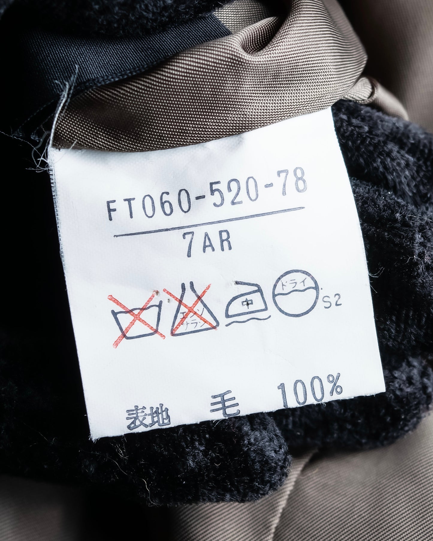 フロントはダブルブレスト仕様となっており、前面に並ぶ2列のボタンが重厚感のあるアクセントを加えるだけでなく、防寒性を高める機能的な効果もあり、これからの肌寒い季節にとても重宝するディテールに仕上がっております。