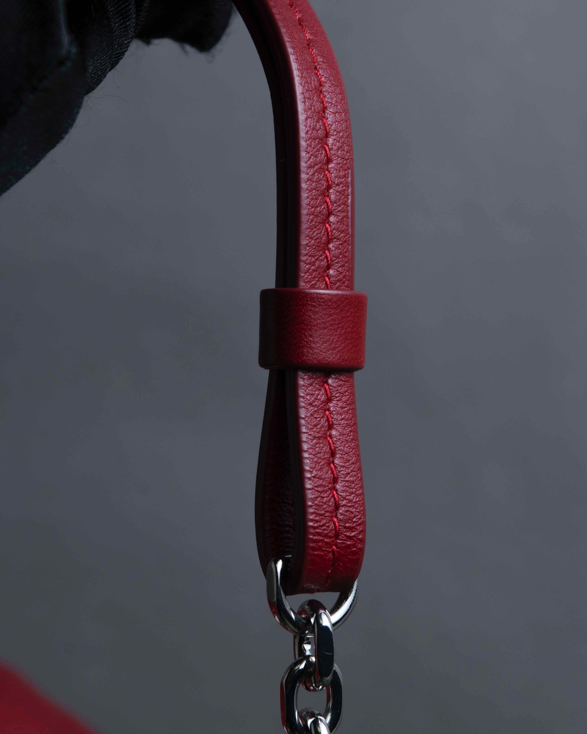 スタイリングとしては、持ち前の鮮やかな赤色を主役にしたシンプルなコーディネートをお勧めしており、モノトーンのミニマルな装いにこのバッグをアクセントとして取り入れることで、シンプルながらも洗練された印象を演出して頂けます。また、チェーンストラップを活かし、ゴールドやシルバーのアクセサリーを組み合わせることで、全体の統一感を保ちながらラグジュアリー感を引き立てるスタイルにも落とし込んで頂けます。