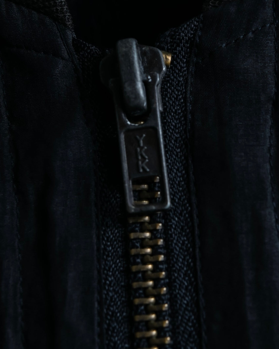 また、注目すべきなのは素材がシルク100%である点。サラッとした肌触りで、着用して頂いた時の着心地が大変良いのはもちろん、ストリートの雰囲気を持つma-1のデザインにシルクを組み合わせることで、高級感とカジュアルなテイストの程よく融合したアイテムとなっておりますね。