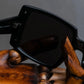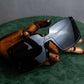 フレームの厚みを抑えることで、重厚感がありながらも軽やかな掛け心地を実現。ワイドなシールドデザインが顔全体を包み込み、フューチャリスティックなムードを演出してくれますね。