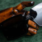 レンズには光を受けてシャープな輝きを放つハイグロス仕上げを採用しており、両端にはミニマルなメタルリベットが打ち込まれ、モードなエッジを加えています。