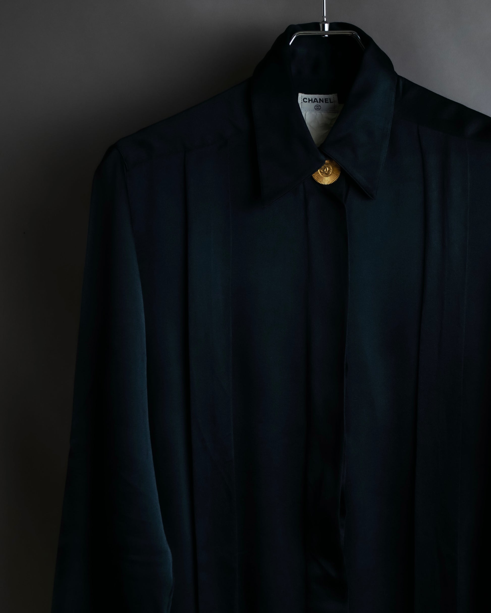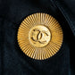 襟元に配されたゴールドのココボタンは、放射状に広がるモチーフとともに、上品な華やかさを添えており、まるでジュエリーのように佇むCHANELらしい意匠美が息づいています。