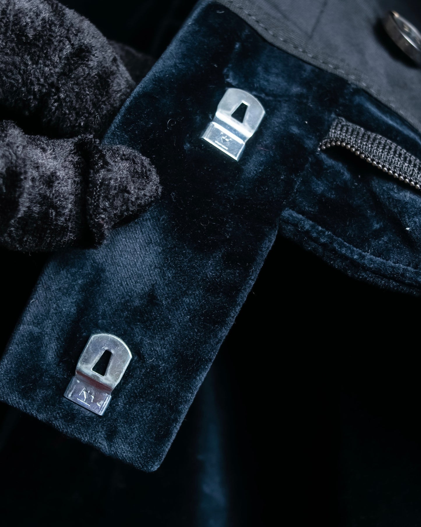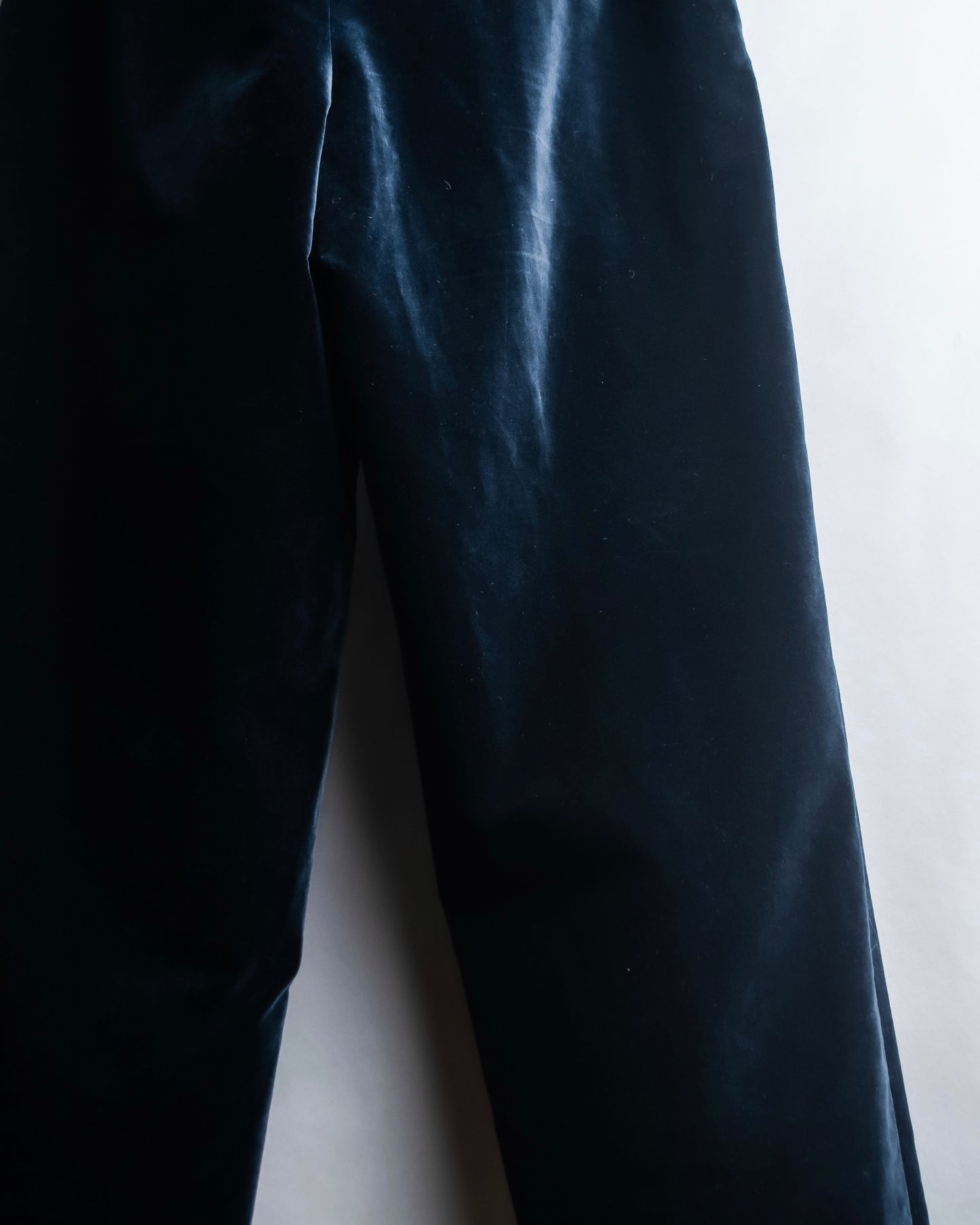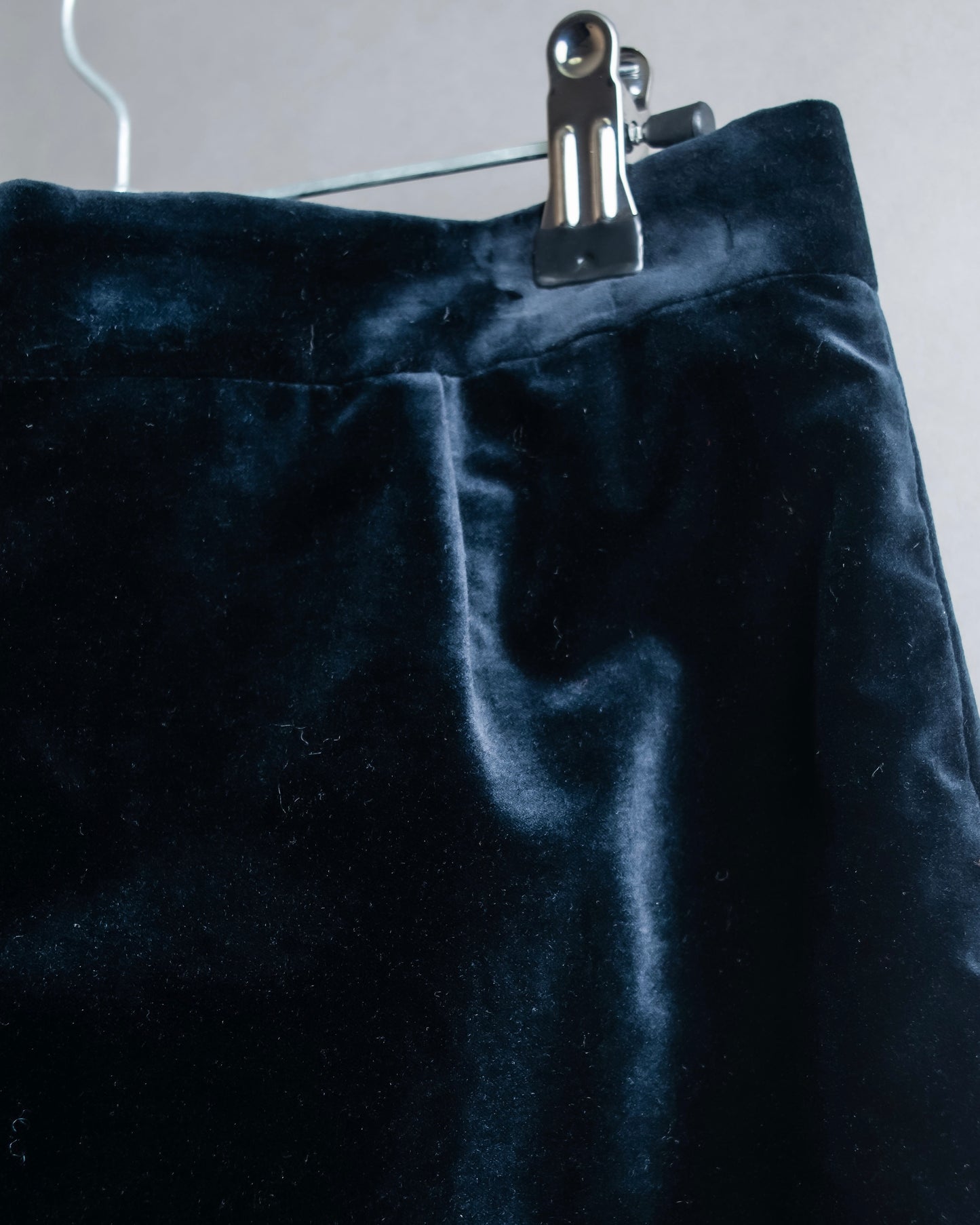 上品な光沢感と柔らかな手触りが特徴のベルベット素材は、ドリスヴァンノッテンならではのエレガンスを体現しており、光の角度によって絶妙に変化する深いブラックの色味は奥行きと豊かさを感じさせ、シンプルでありながら視覚的な存在感を誇っております。