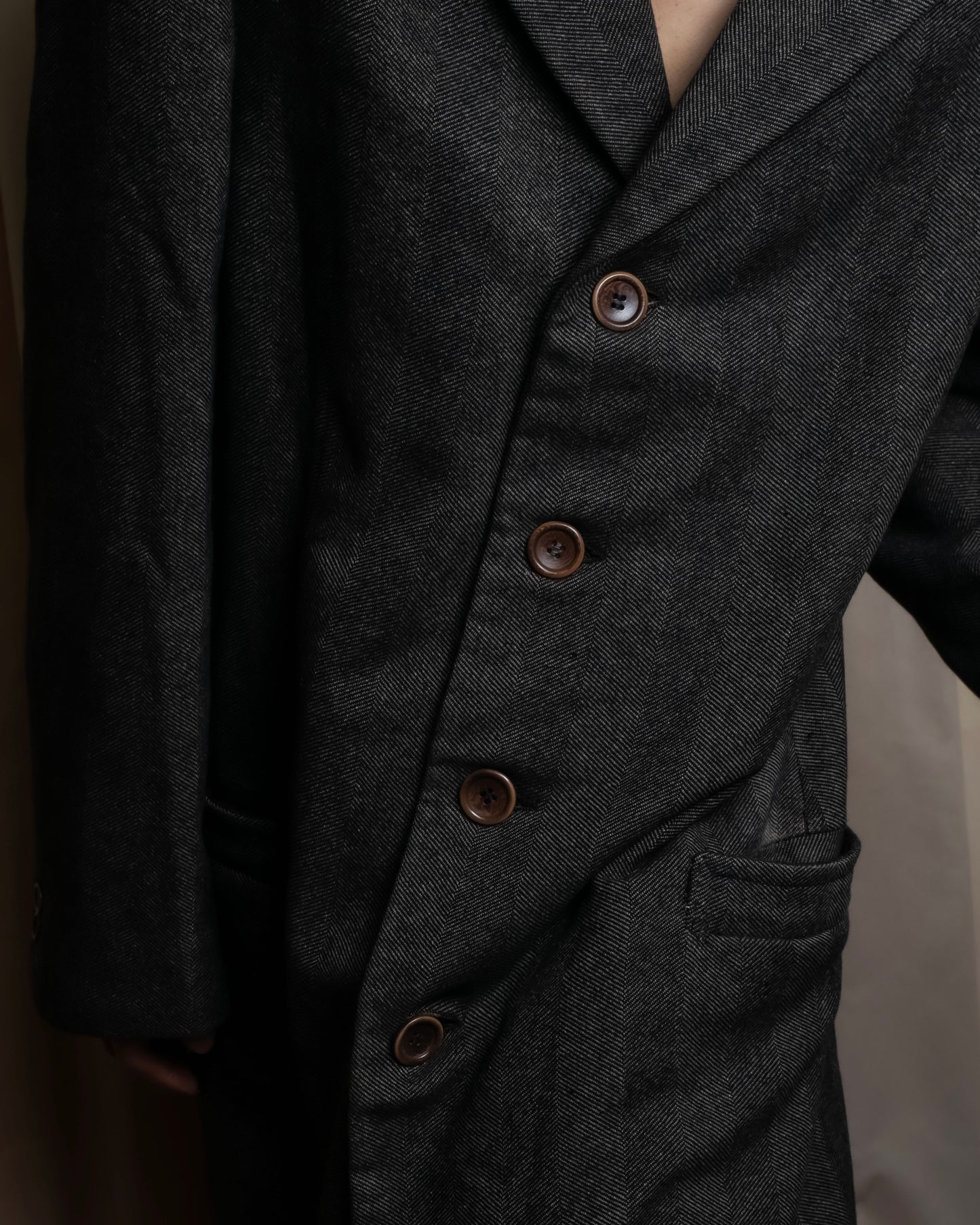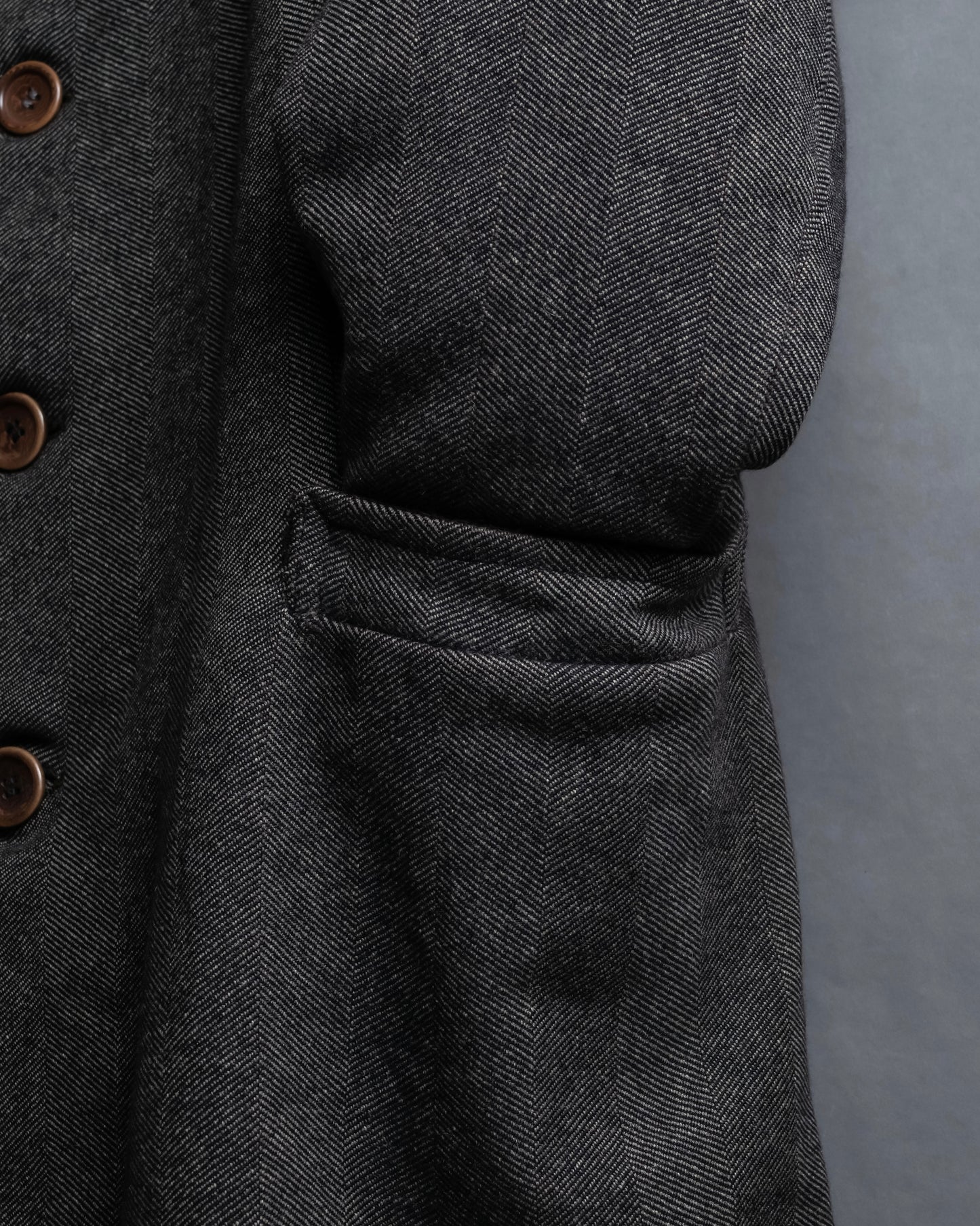 高級感のあるヘリンボーン生地を使用している為、独特かつ美しい厚みがあり、保温性や耐久性にも優れている為、AWシーズンの一張羅としての風格が素材感からもお楽しみ頂けます。