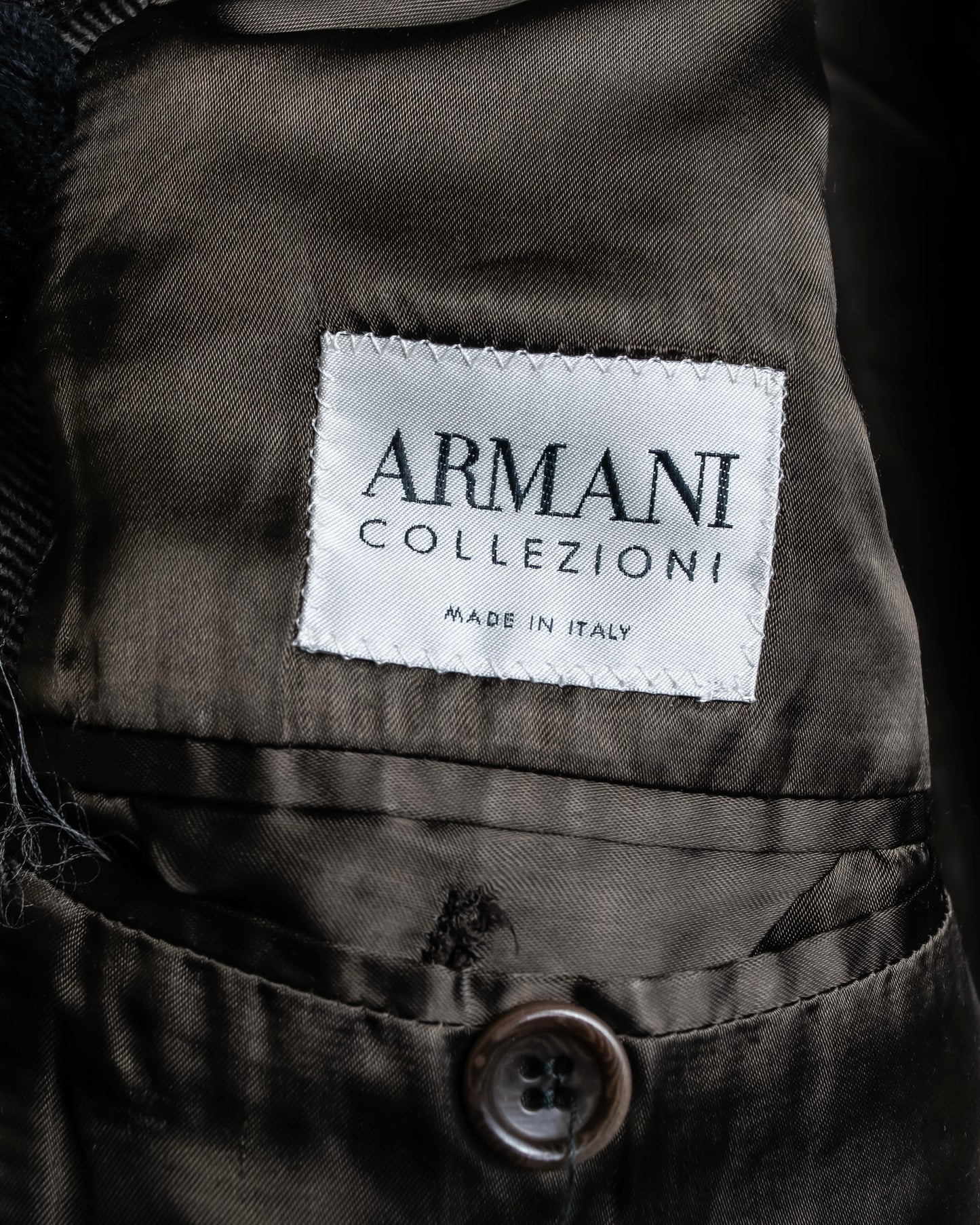すっきりしたシルエットと上質な質感で、シンプルながらにアルマーニらしさを感じる一着が魅力的な、ジョルジオアルマーニのセカンドラインにあたるARMANI COLLEZIONIより、仕立ての美しい逸品をご紹介致します。