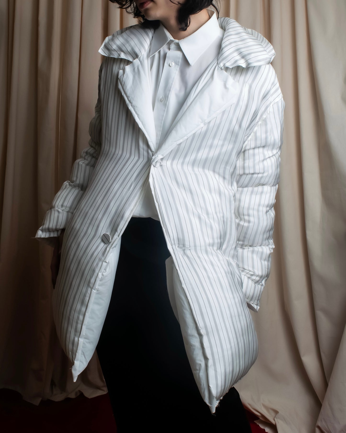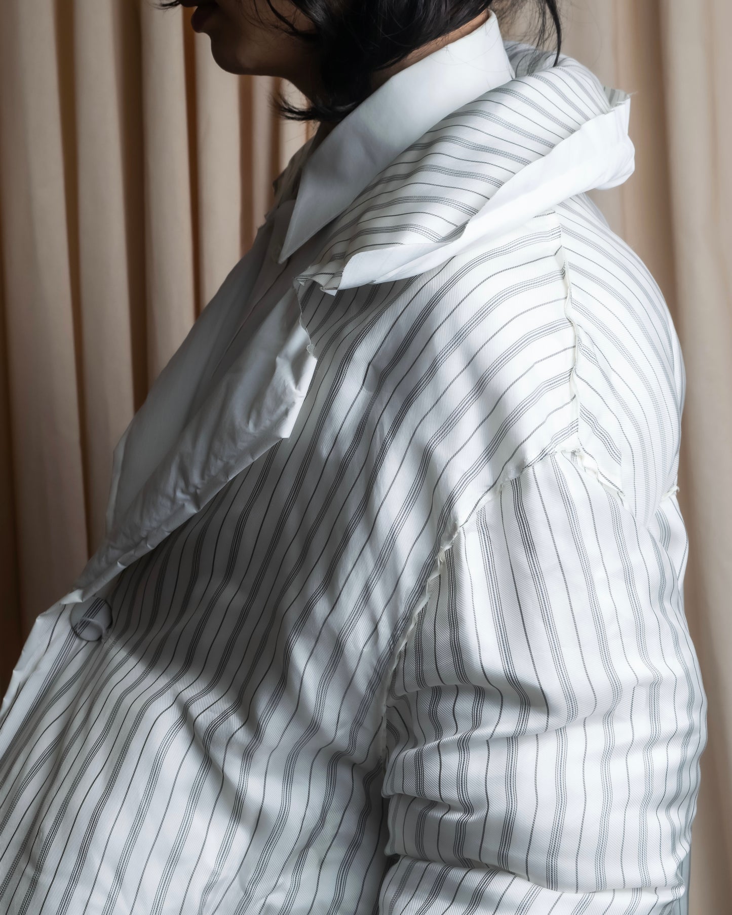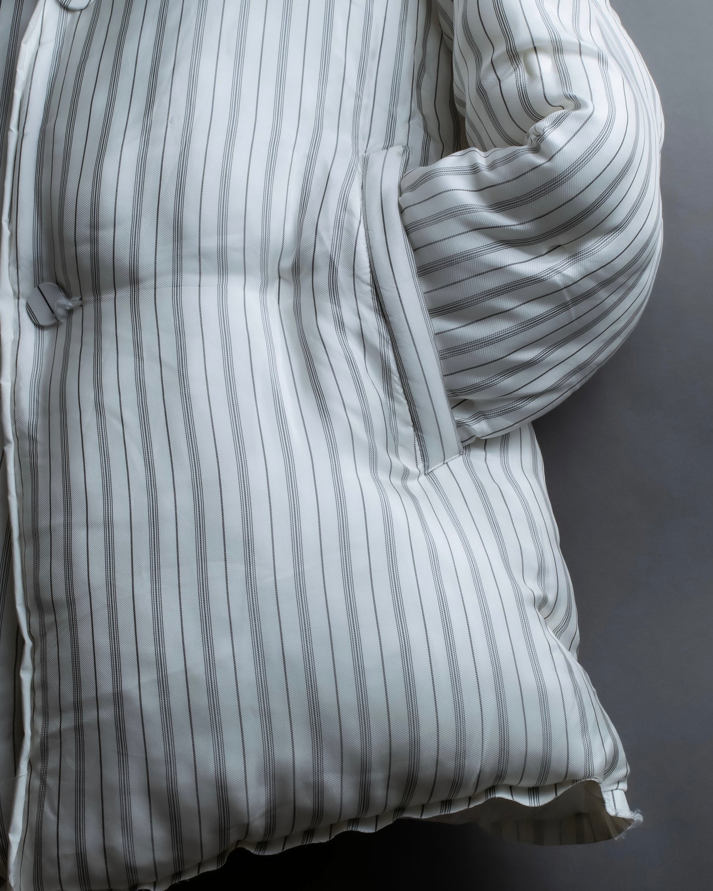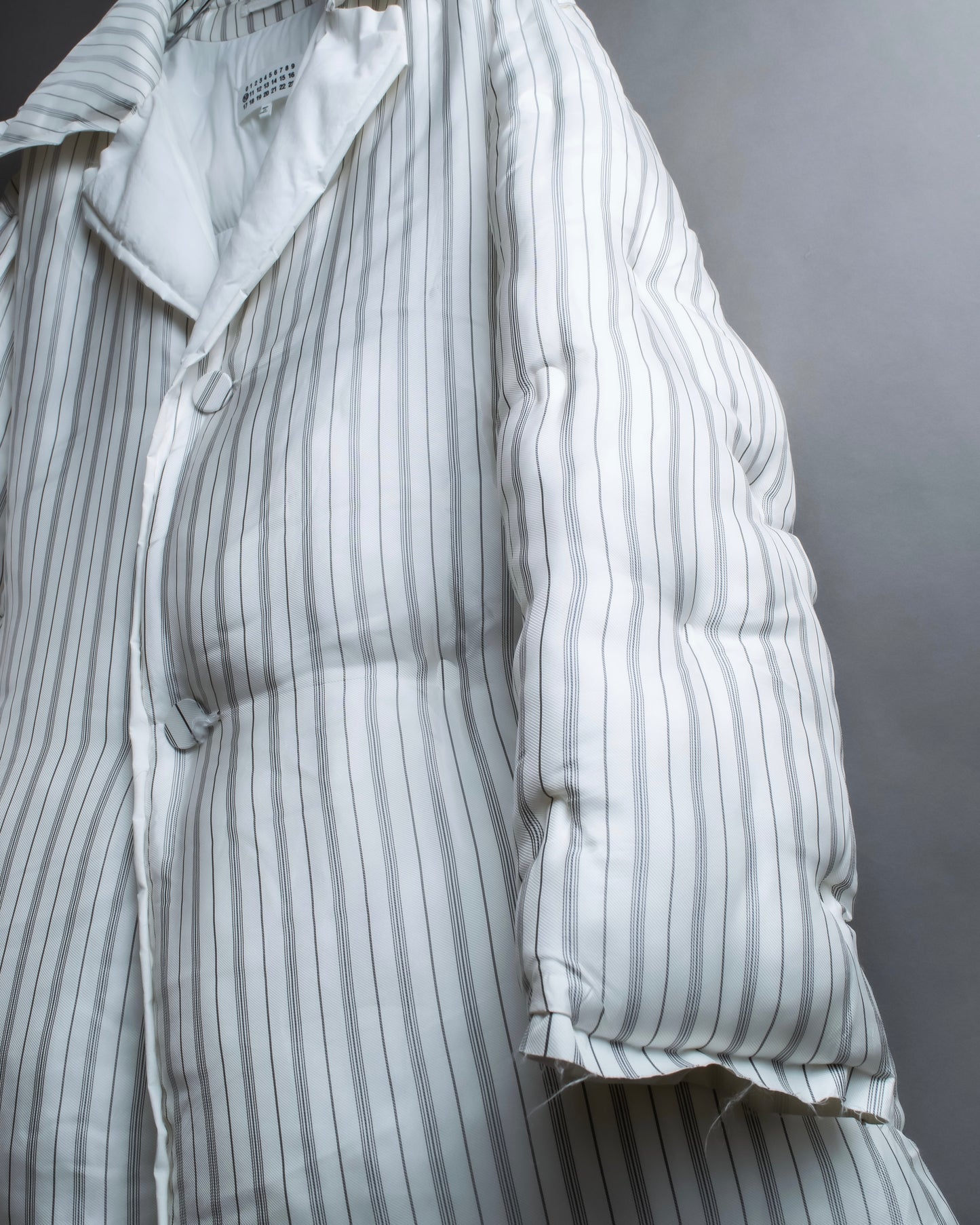 "MAISON MARGIELA" Multi-stripe pattern quilted padded oversized tailored coat