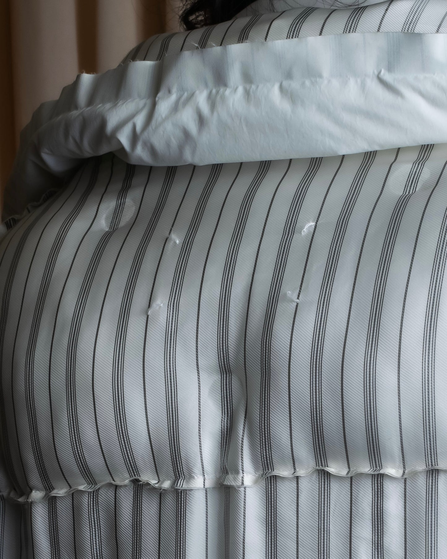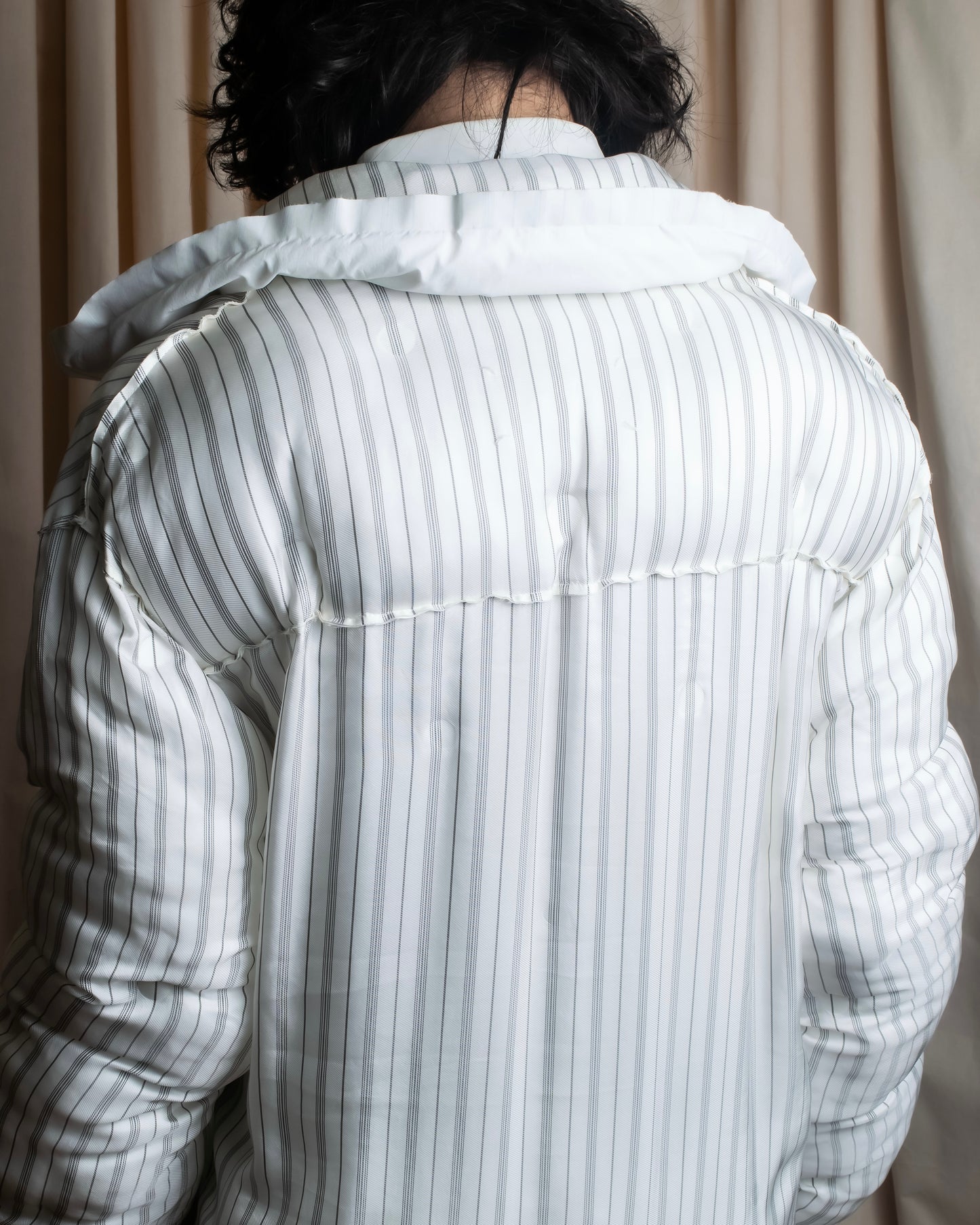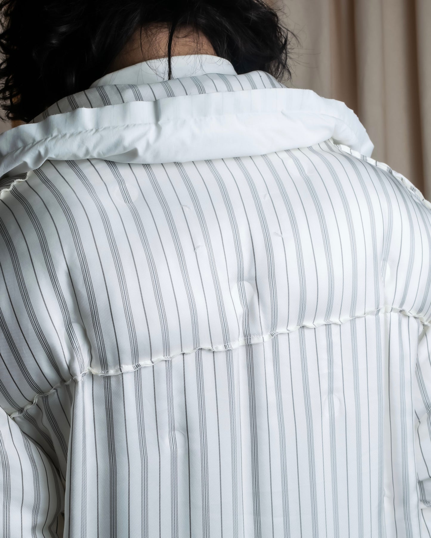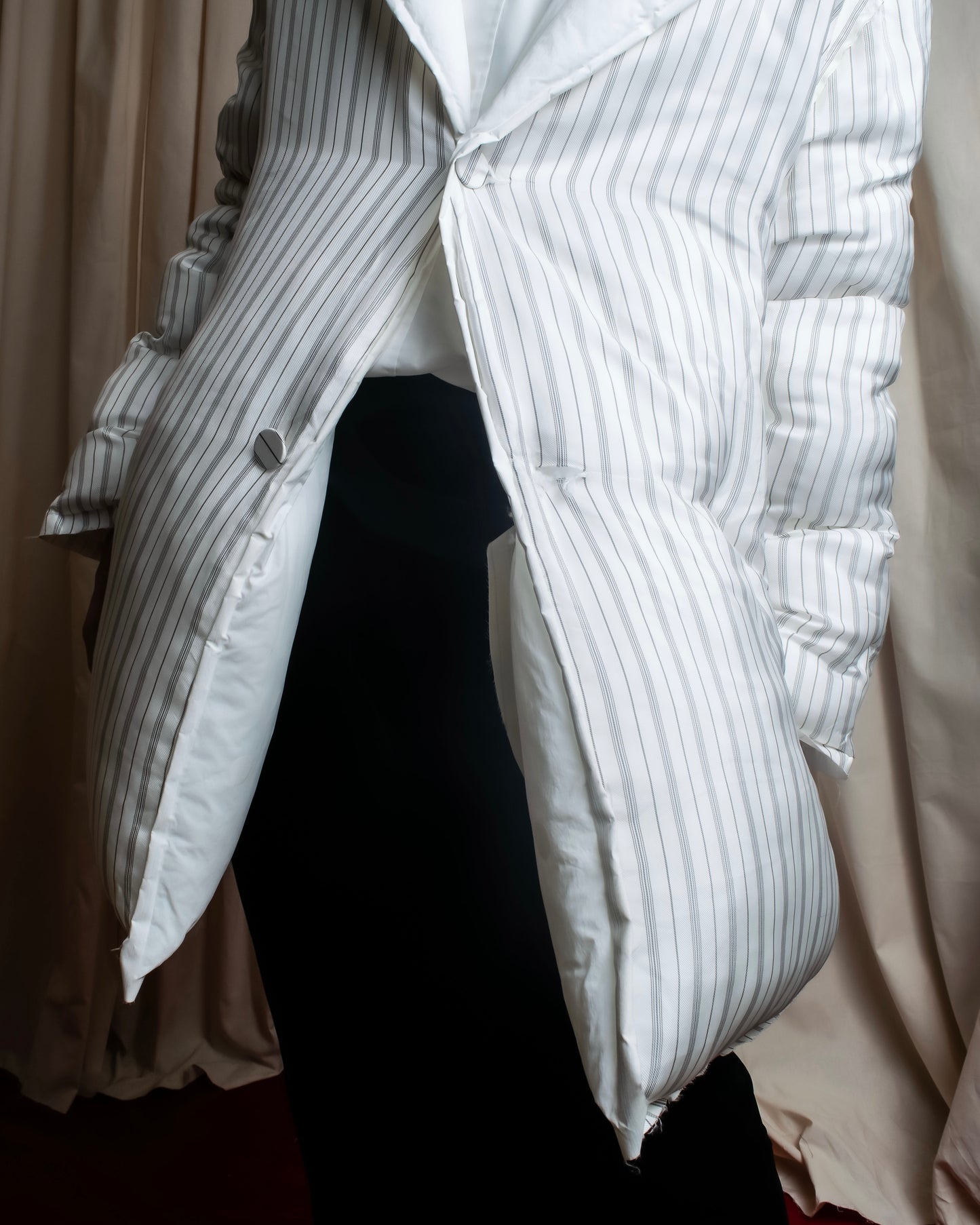 "MAISON MARGIELA" Multi-stripe pattern quilted padded oversized tailored coat