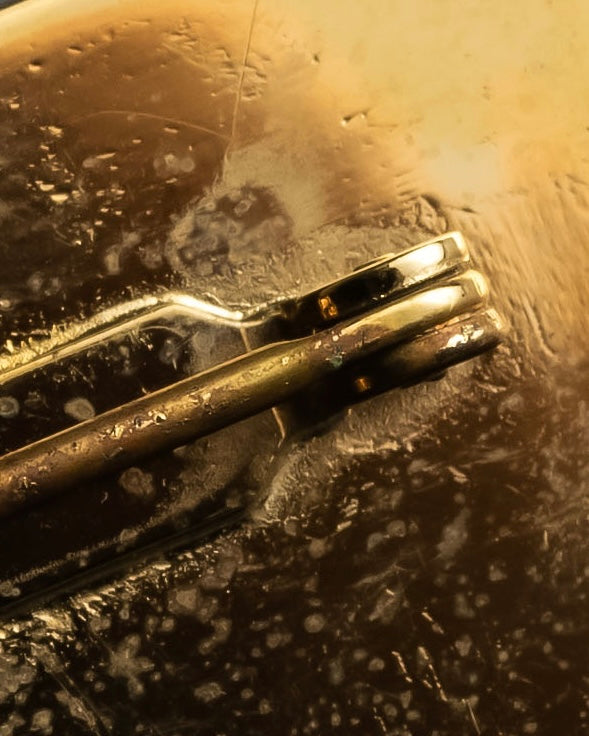 文字部分にあしらわれたブラックエナメルの艶が、ゴールドの温かみと絶妙なコントラストを描き出しており、照明や角度によってその表情を変える様は、まさにジュエリーのような奥行きを感じさせてくれます。