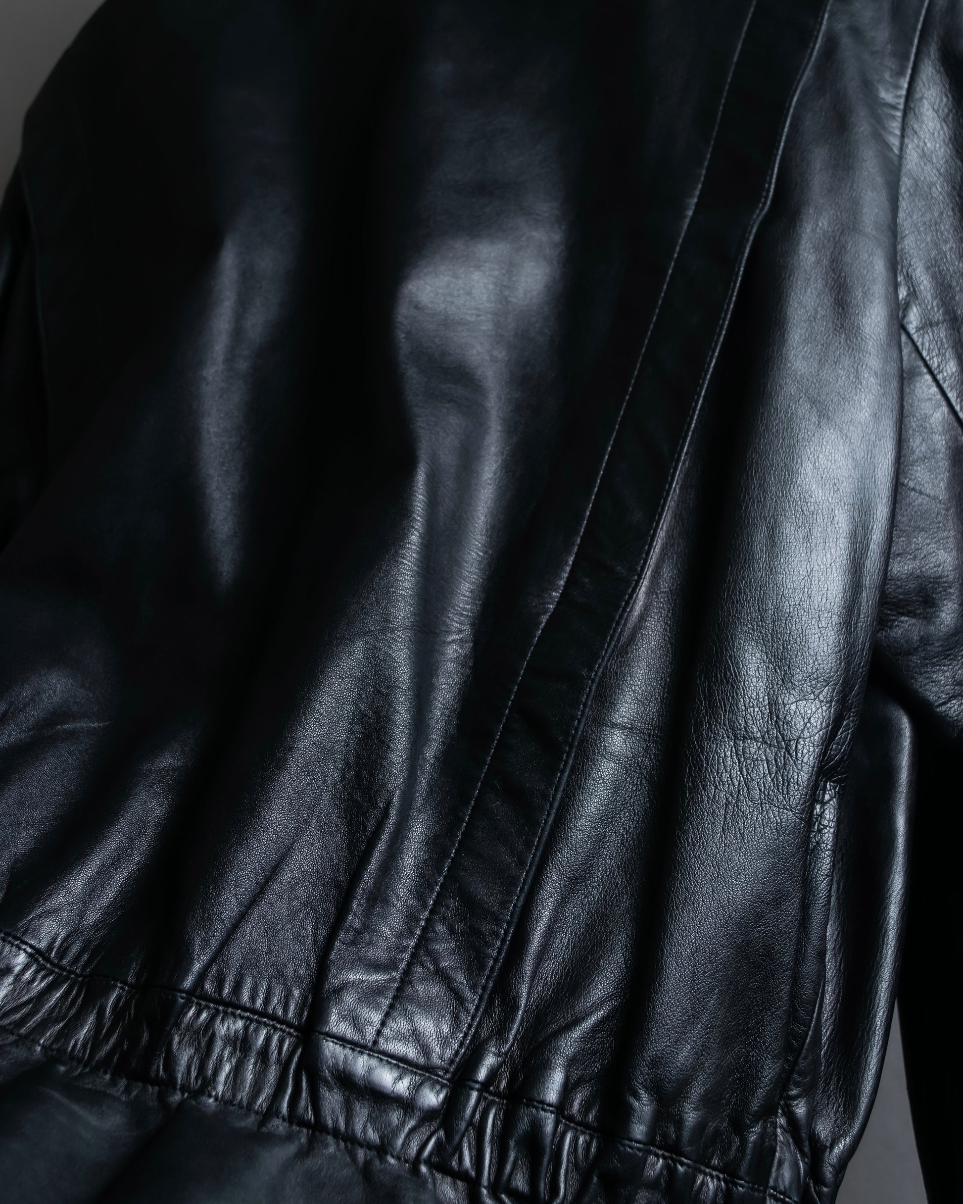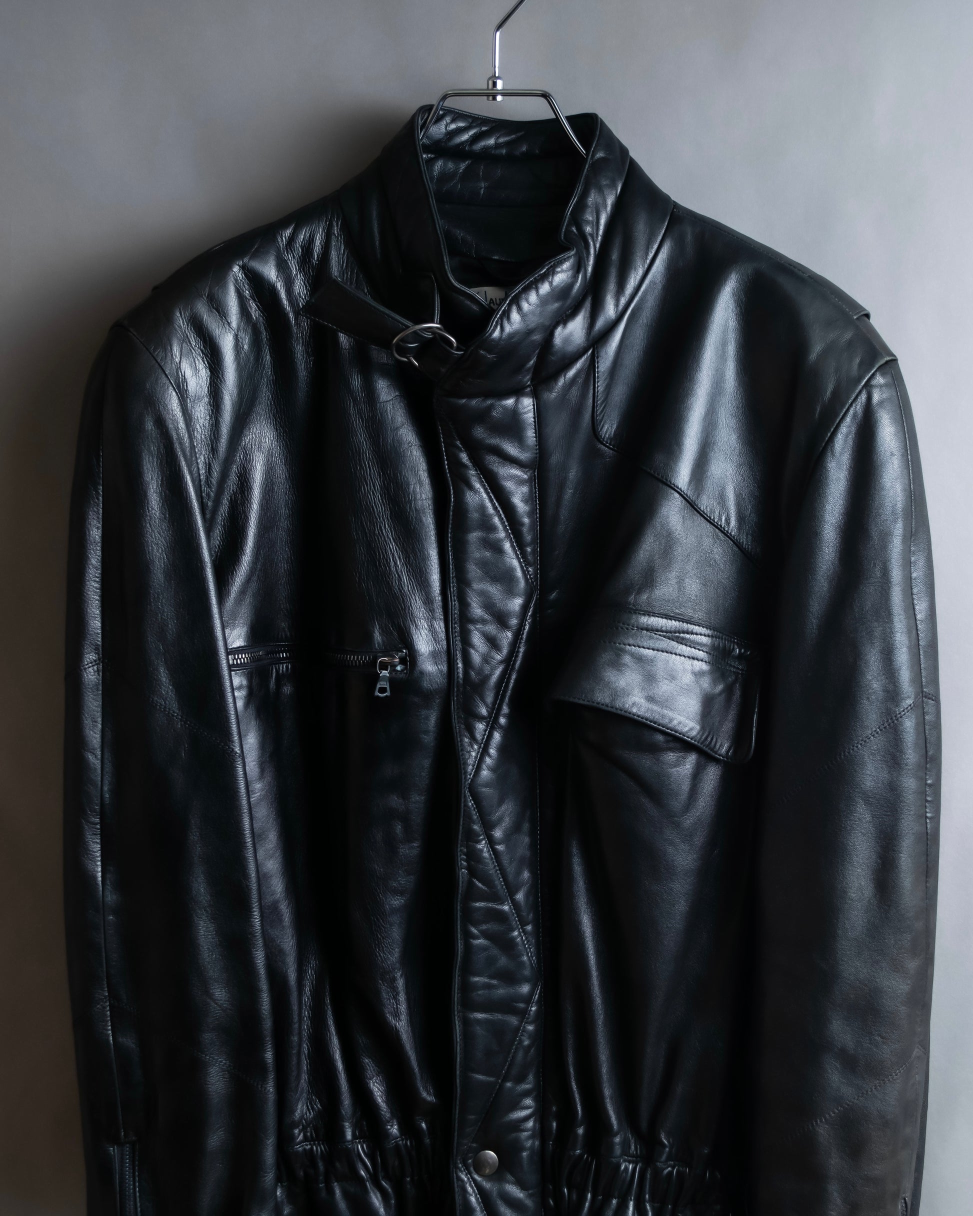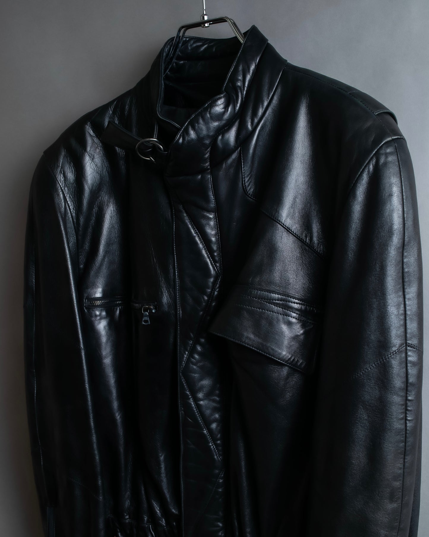 "Claude Montana" Drawcord detail stand-up collar leather blouson