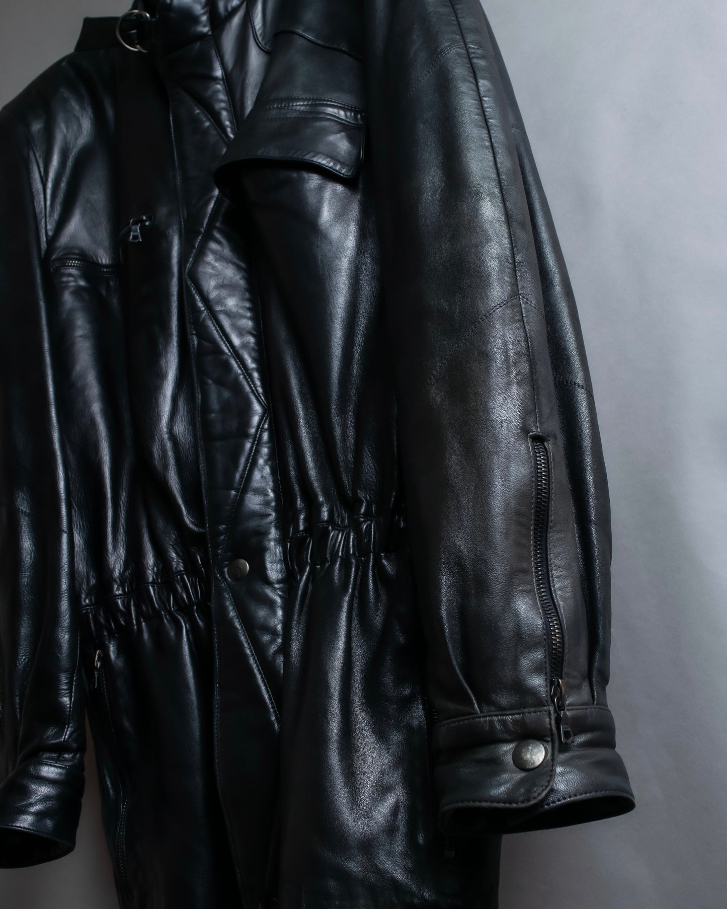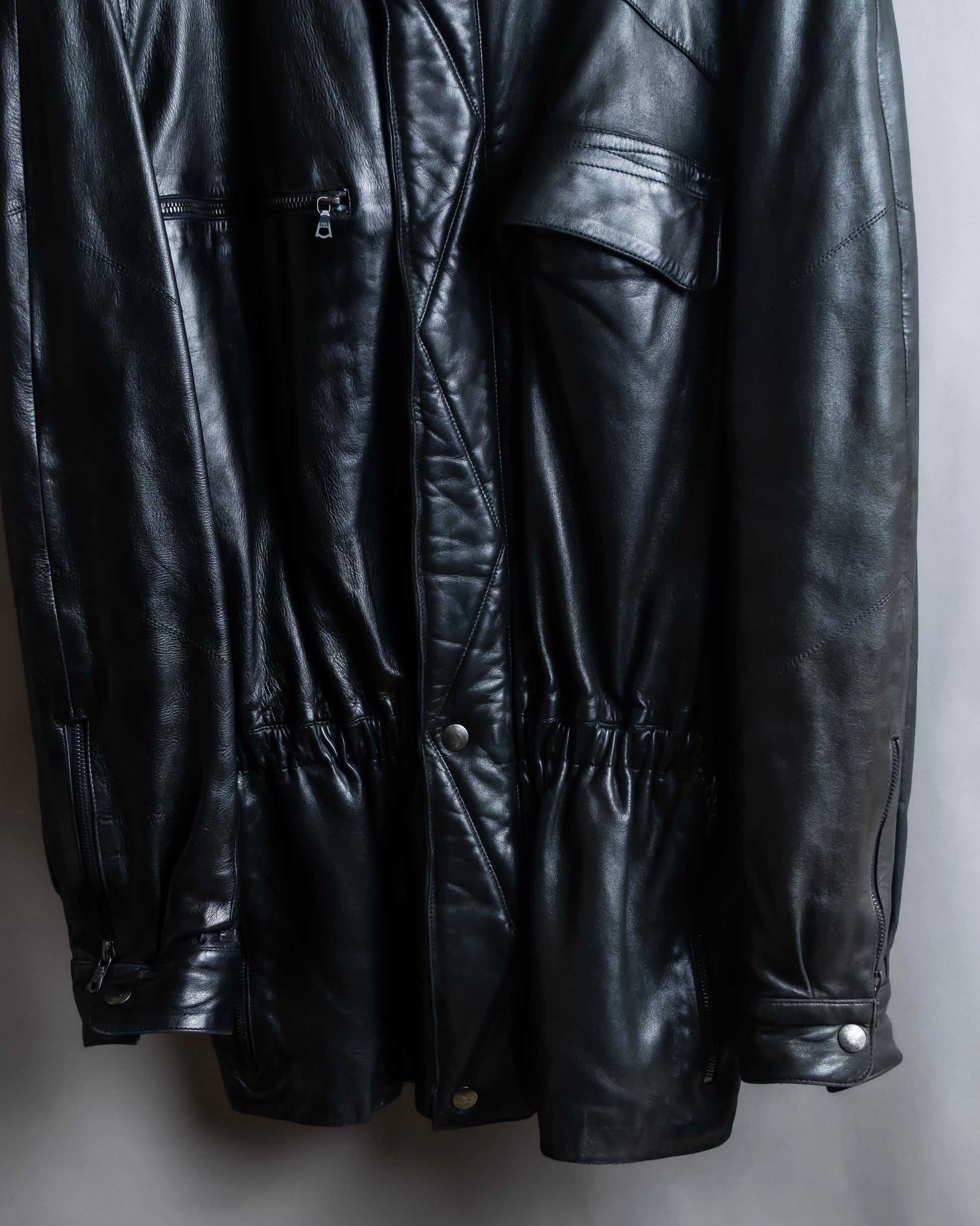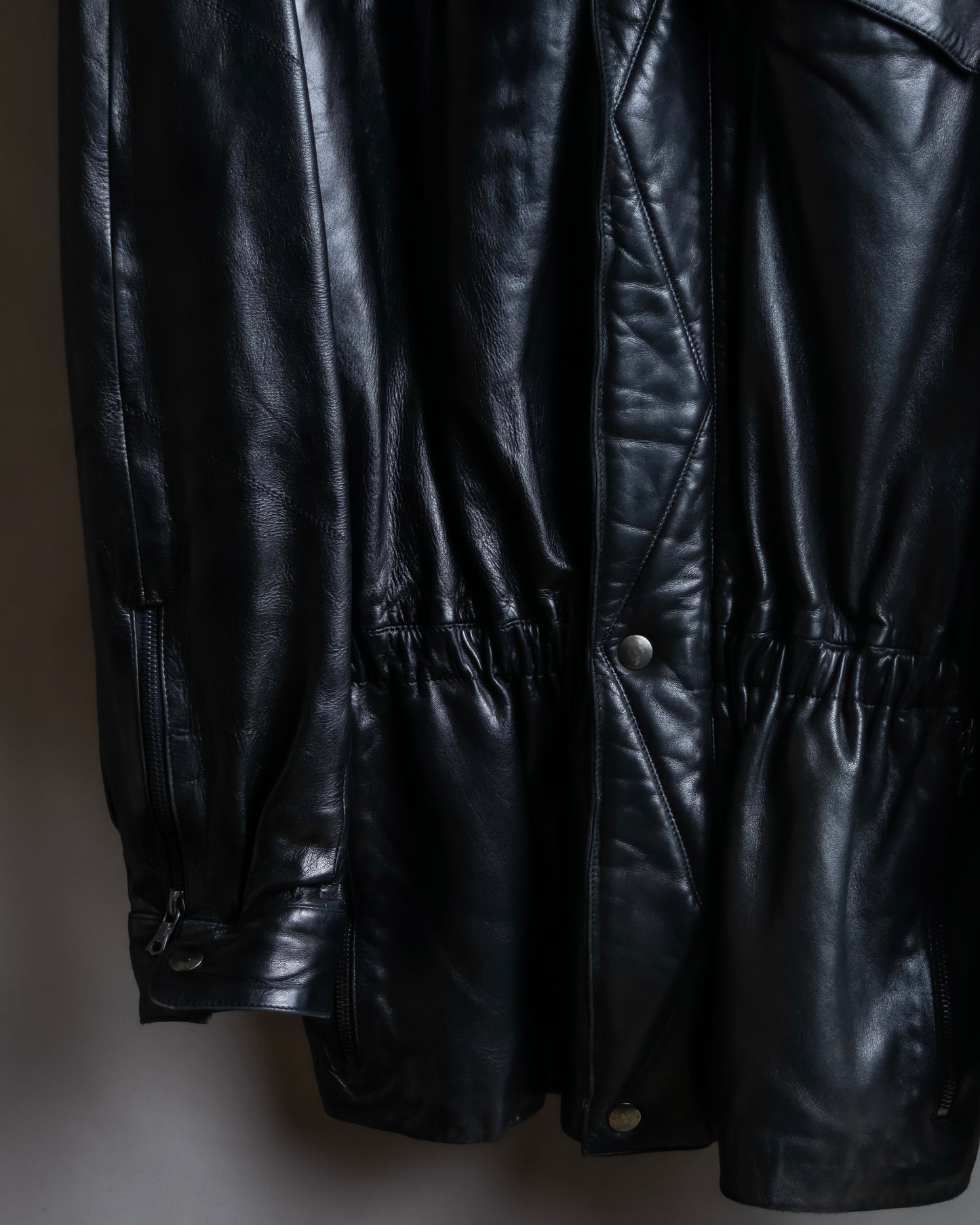 "Claude Montana" Drawcord detail stand-up collar leather blouson