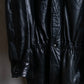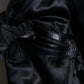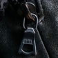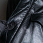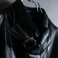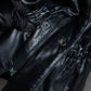 襟元はスタンドカラーで、Dリングを使ったレザーベルトによって固定が可能となっており、エレガントさと力強さを同時に演出して頂けます。