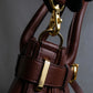 スタイリングとしては、落ち着いたトーンのジャケットやタートルネックと合わせてバッグを主役に引き立てるようなモノトーンコーディネートがおすすめで、あえて色を抑えた装いにこの深いレッドブラウンを一点投入していただくことで、全体に静かな華やぎが加わったアイコニックな着こなしをお楽しみ頂けます。