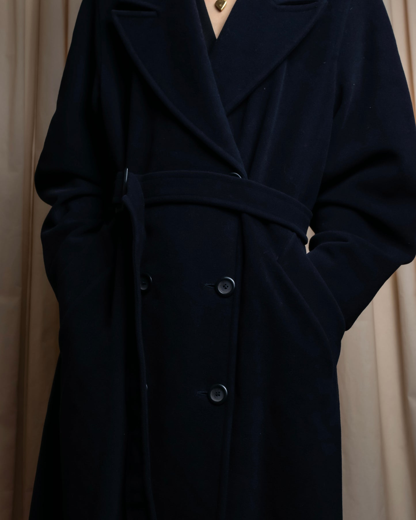 "Weekend Max Mara" Belted design double breasted maxi length wool chester coat