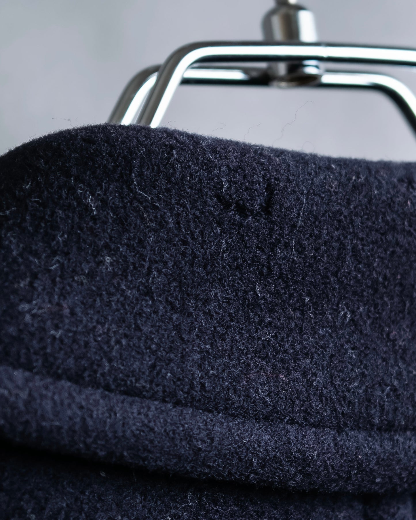 ウールのメルトン素材が使用されている為、重厚感のある直線的なシルエットを帯びつつ、高密度に織られた素材本来のしっかりとした厚みにより、防寒性にも優れ、真冬にも対応して頂ける逸品に仕上がっております。