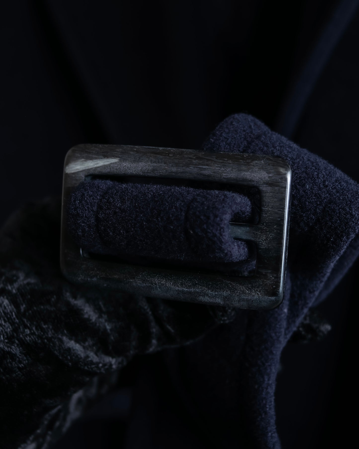 ウエストを絞ることが出来るベルテッド仕様となっている為、スタイルを自在に調整でき、ウエストラインを強調し、シルエットにメリハリを与えた洗練された印象を演出して頂けます。