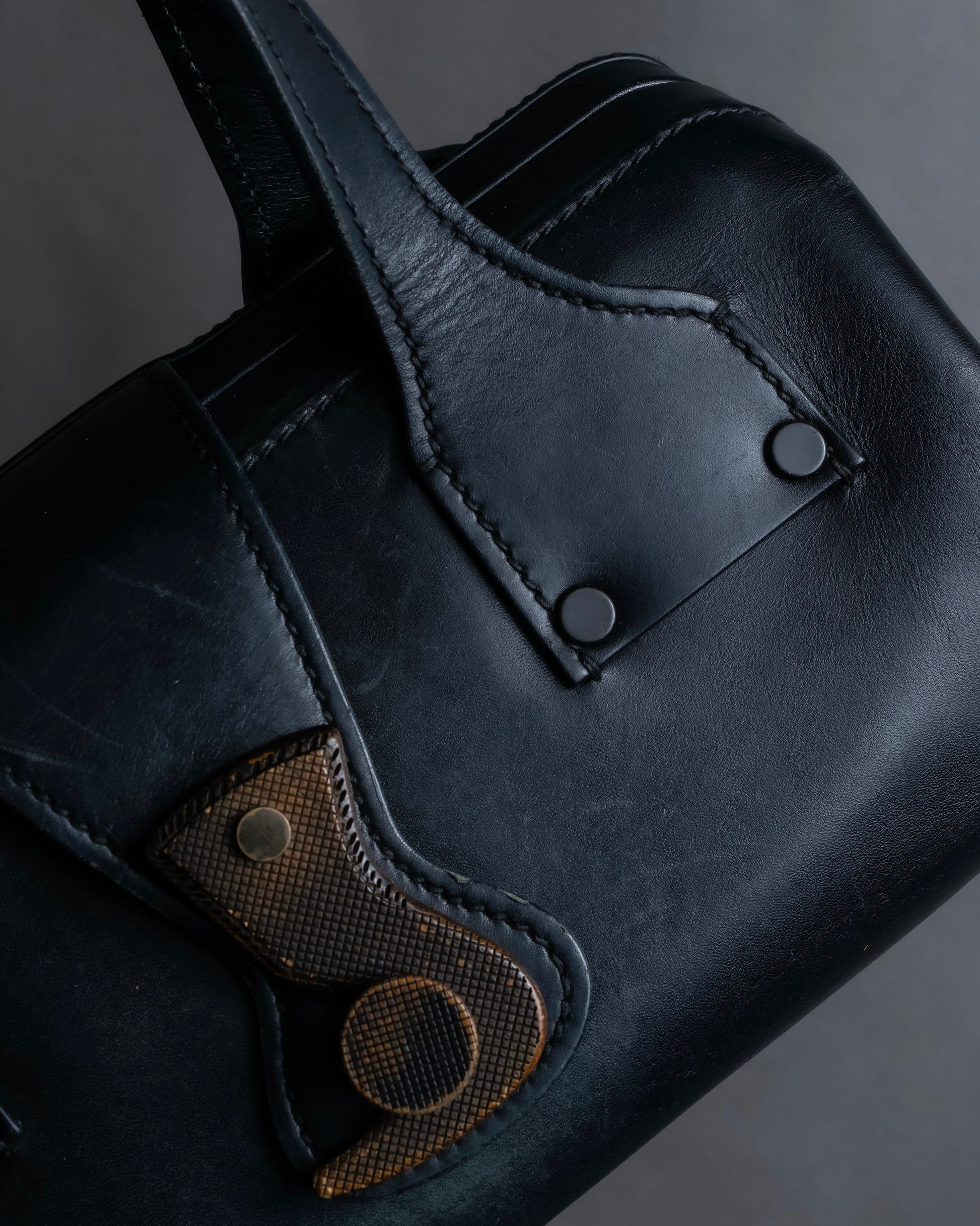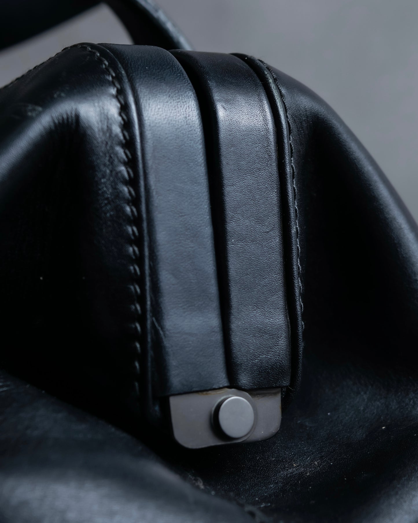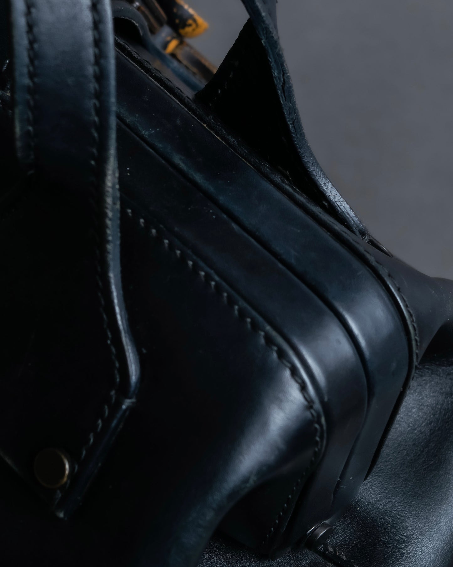 クラシカルな趣を漂わせるミニマルなフォルムが特徴で、しなやかに馴染むブラックレザーの質感が、手に取るほどにその奥深さを感じさせるこちらの逸品。美しく湾曲するトップハンドルのラインが、クラフトマンシップの高さを物語っており、シンプルでありながら存在感のある佇まいが印象的ですね。