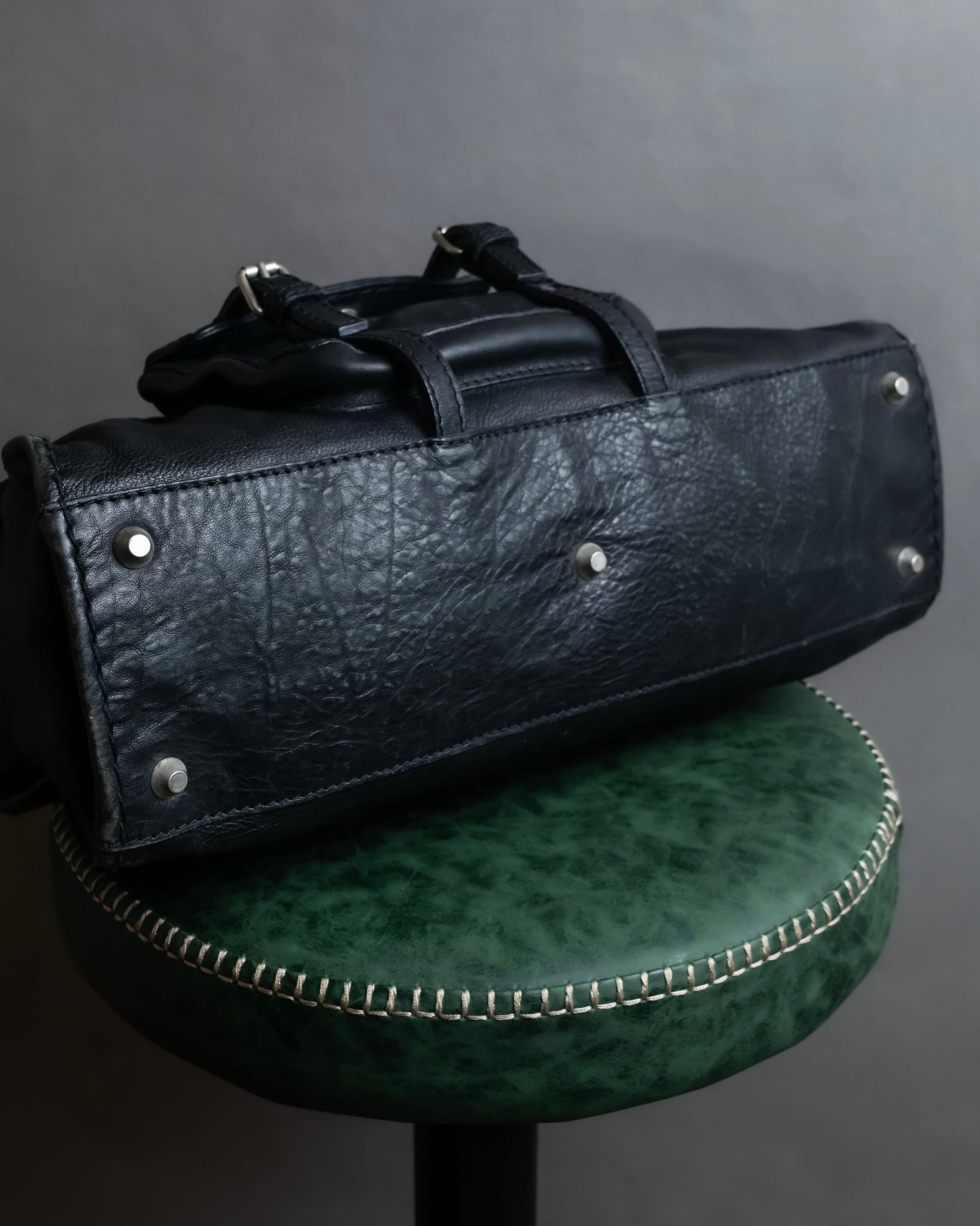 柔らかなブラックレザーが使用されている為、ナチュラルな風合いとしなやかさが際立っており、使い込むほどに手に馴染み、経年変化を楽しむことができる素材感に仕上がっております。