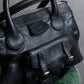 バッグのハンドル部分は丸みを帯びたデザインで、手にしっくりと馴染むサイズ感と質感が印象的です。またジッパーの引き手部分はメタル素材で、シンプルながら高級感を加えております。
