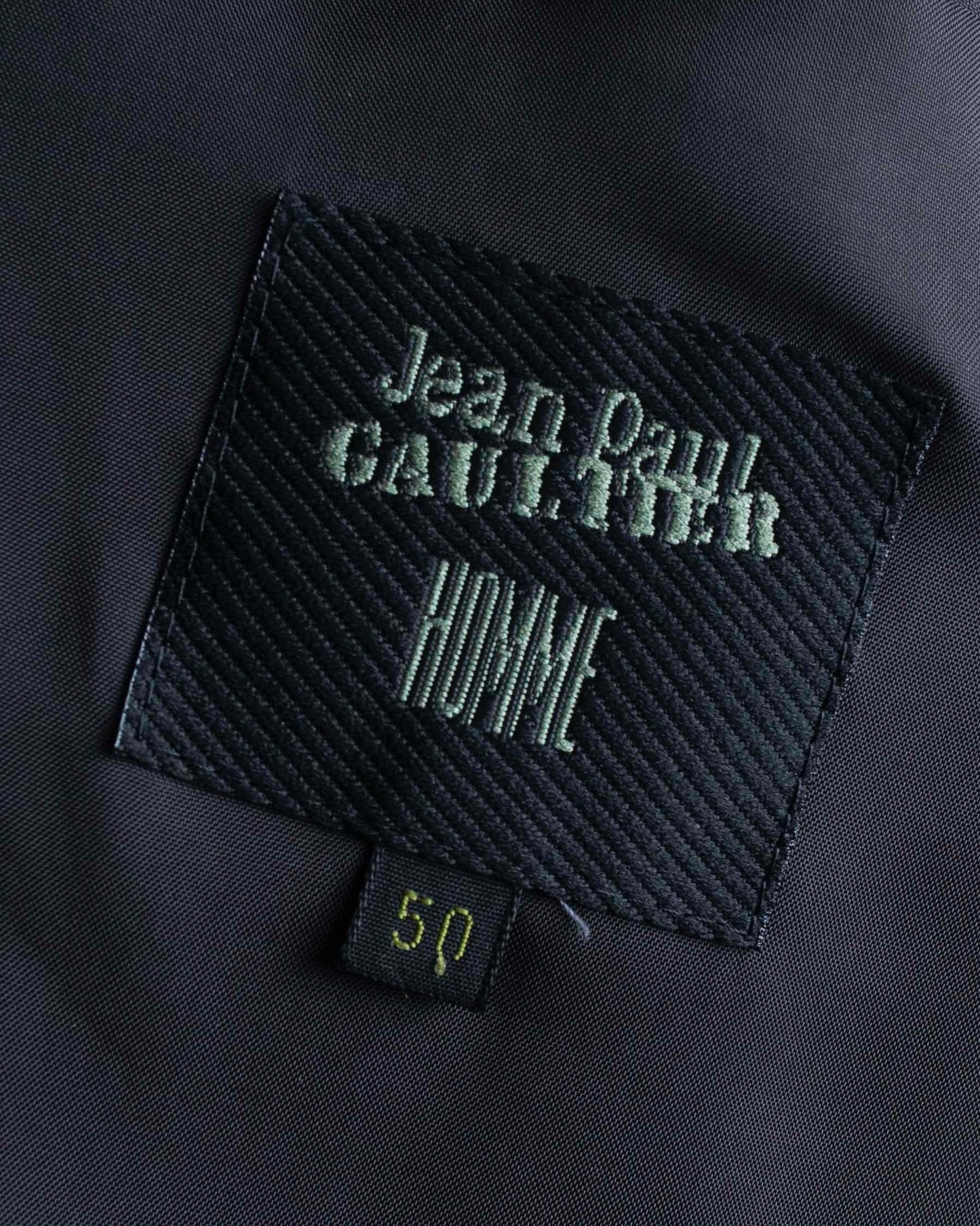 クラシックなテーラリングスタイルをベースに使用しつつも、ゴルチエらしい大胆な現代的要素を加えたデザインが際立つこちらの逸品。