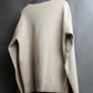 シルエットはリラックス感がありつつも、だらしなく見えない絶妙なバランスが魅力。肩のラインは少し落ちるドロップショルダー仕様となっているため、自然とこなれた印象を演出し、日常のスタイリングにも溶け込みやすいですね。